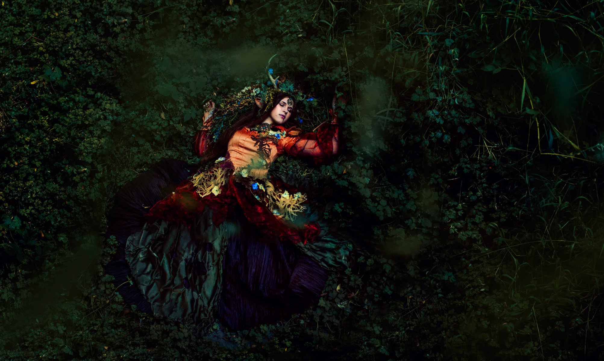 Ein männlicher Engel sitzt mit bandumwickelten Beinen auf einem Stein