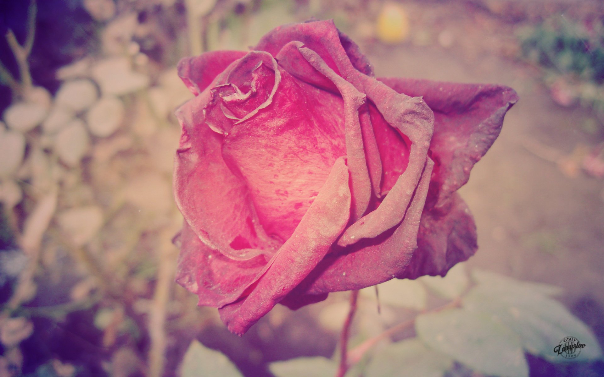 Reflexion im Wasser der Knospe einer zerrissenen Rose
