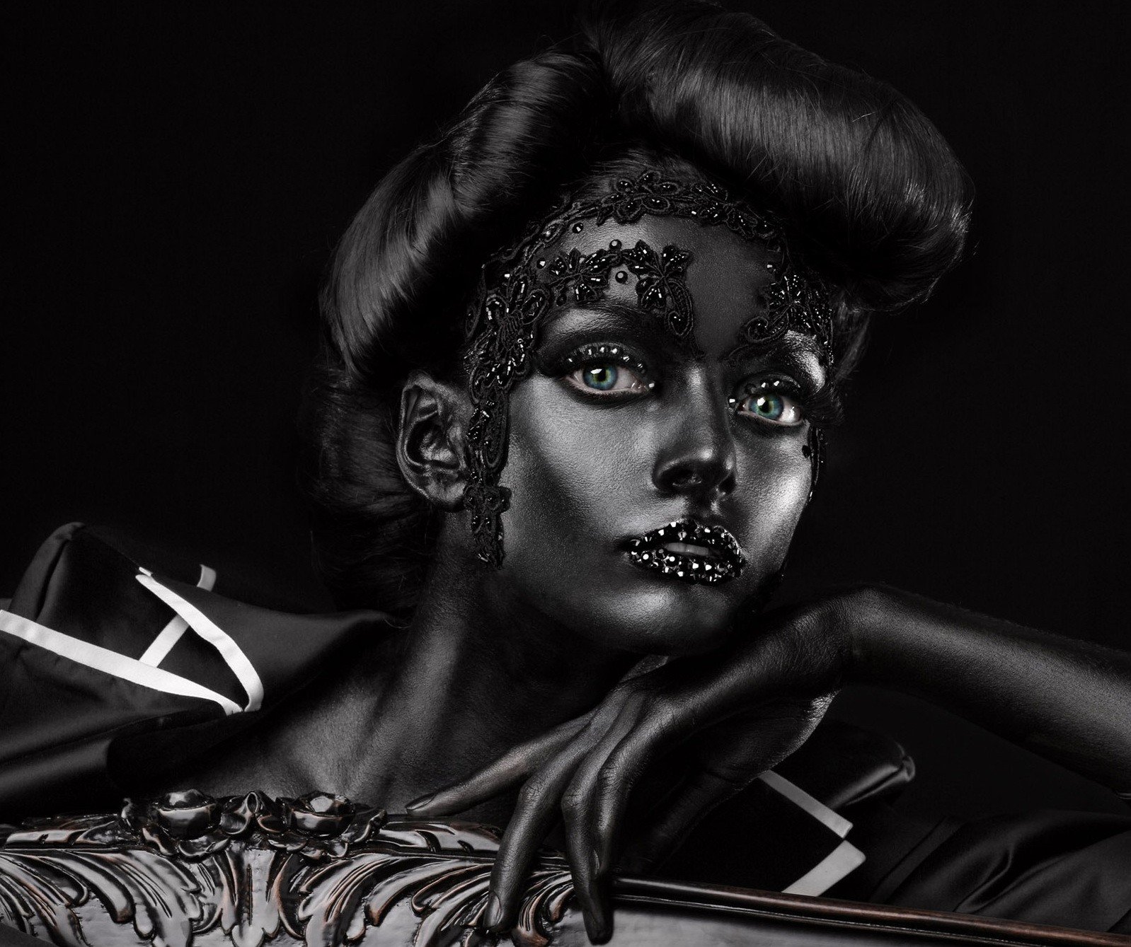 Schwarzes Foto des Mädchens mit Make-up