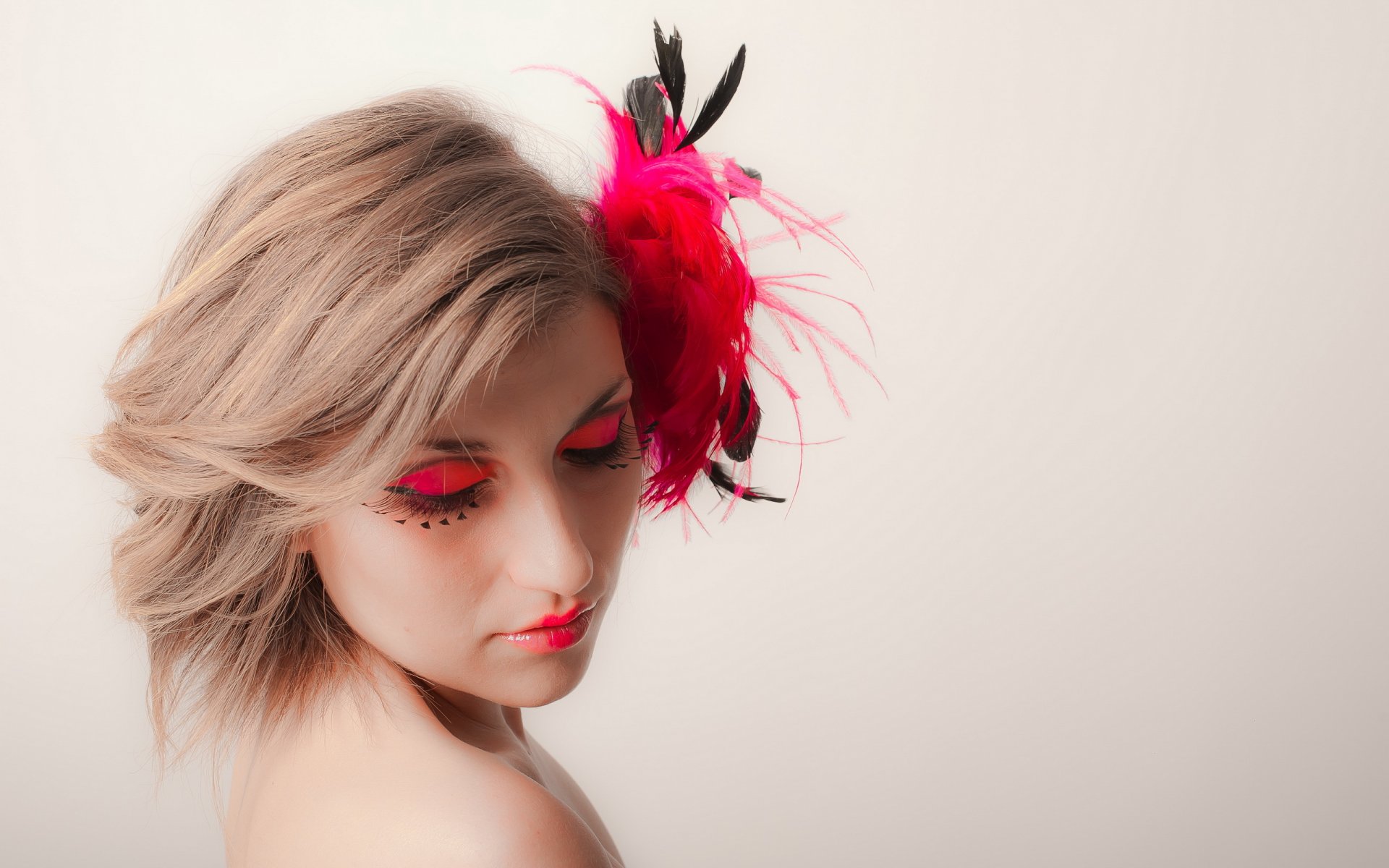 Lila Hintergrund, Kunst mit Mädchen und Blumen im Haar