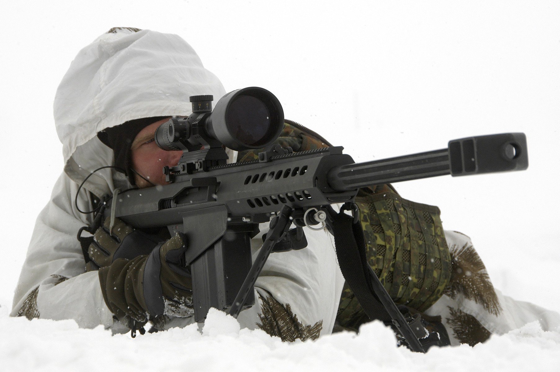 Ein Soldat schießt mit einer Waffe auf den Feind