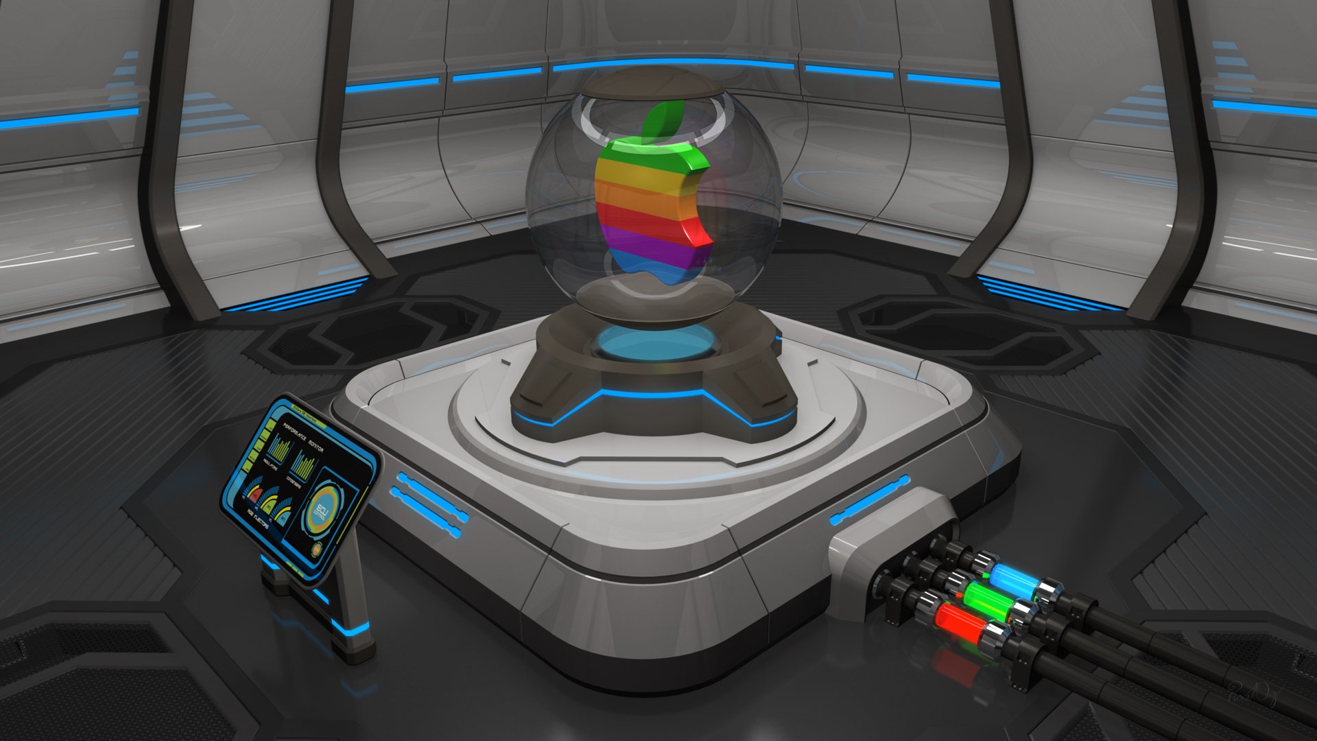 Apple-Logo mit blauen Streifen auf Hintergrund