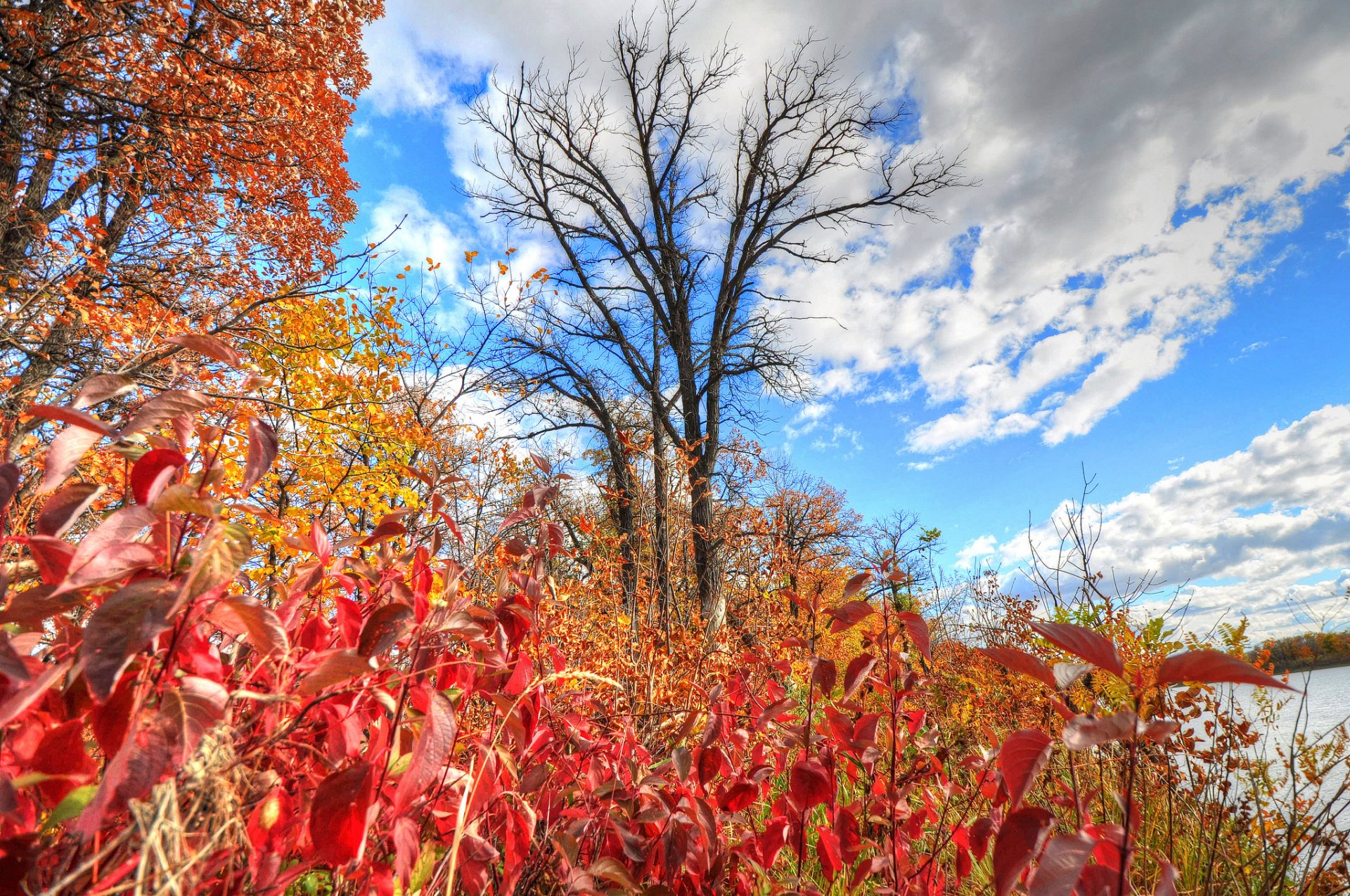 Herbstliche Natur am ruhigen Fluss