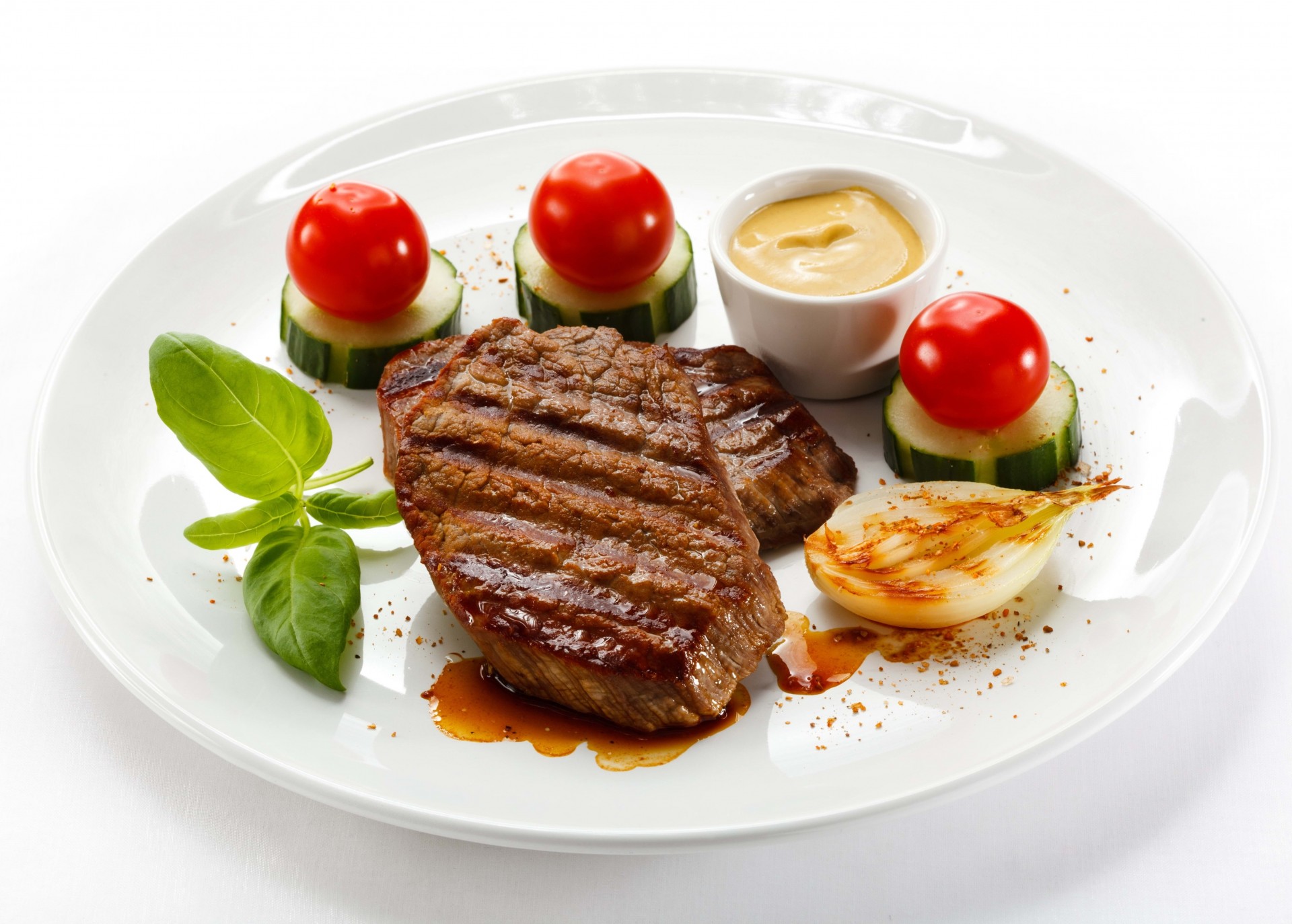 Schönes Kotelett mit einem Blatt und einer Gurke