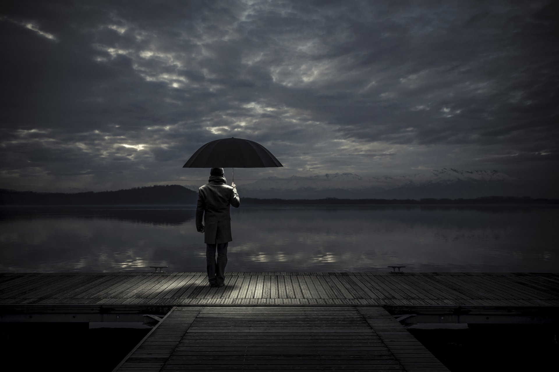 Ein Mann bewundert den Sonnenuntergang in der Antarktis