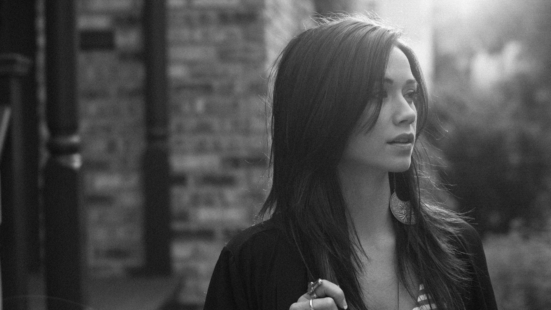 Schönes Mädchen auf schwarzem weißem Hintergrund