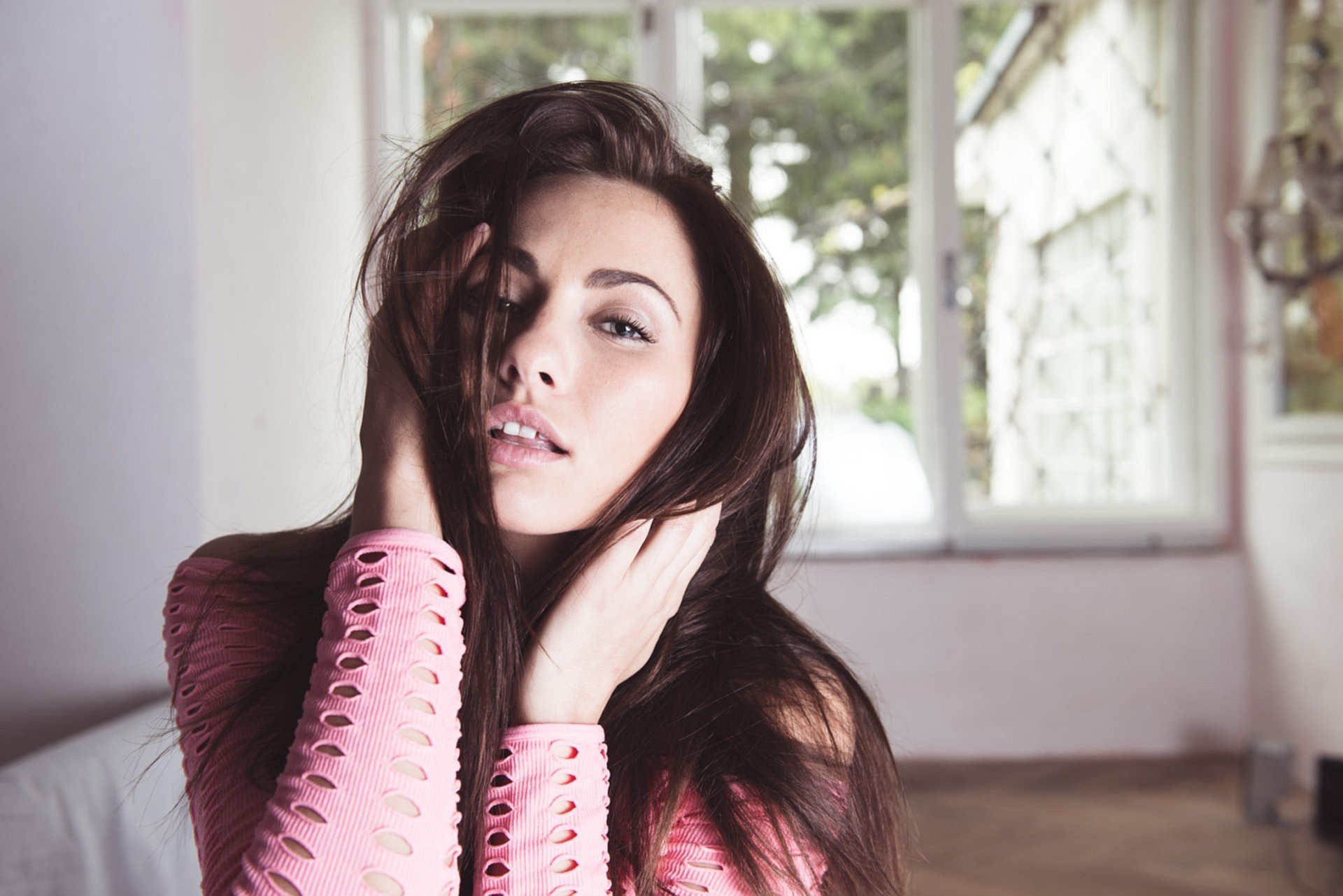 Ausdrucksstarker Blick des braunhaarigen Mädchens