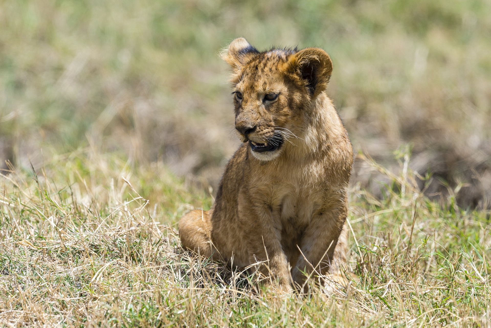 Ein einsamer Löwe mit einem süßen Maulkorb