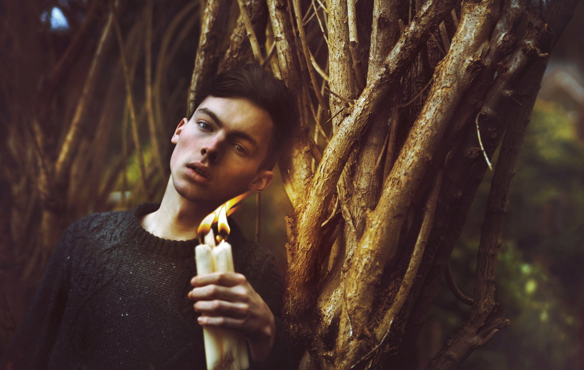 Ein Mann zündet eine Zigarette aus einem Ast aus einem Feuer an