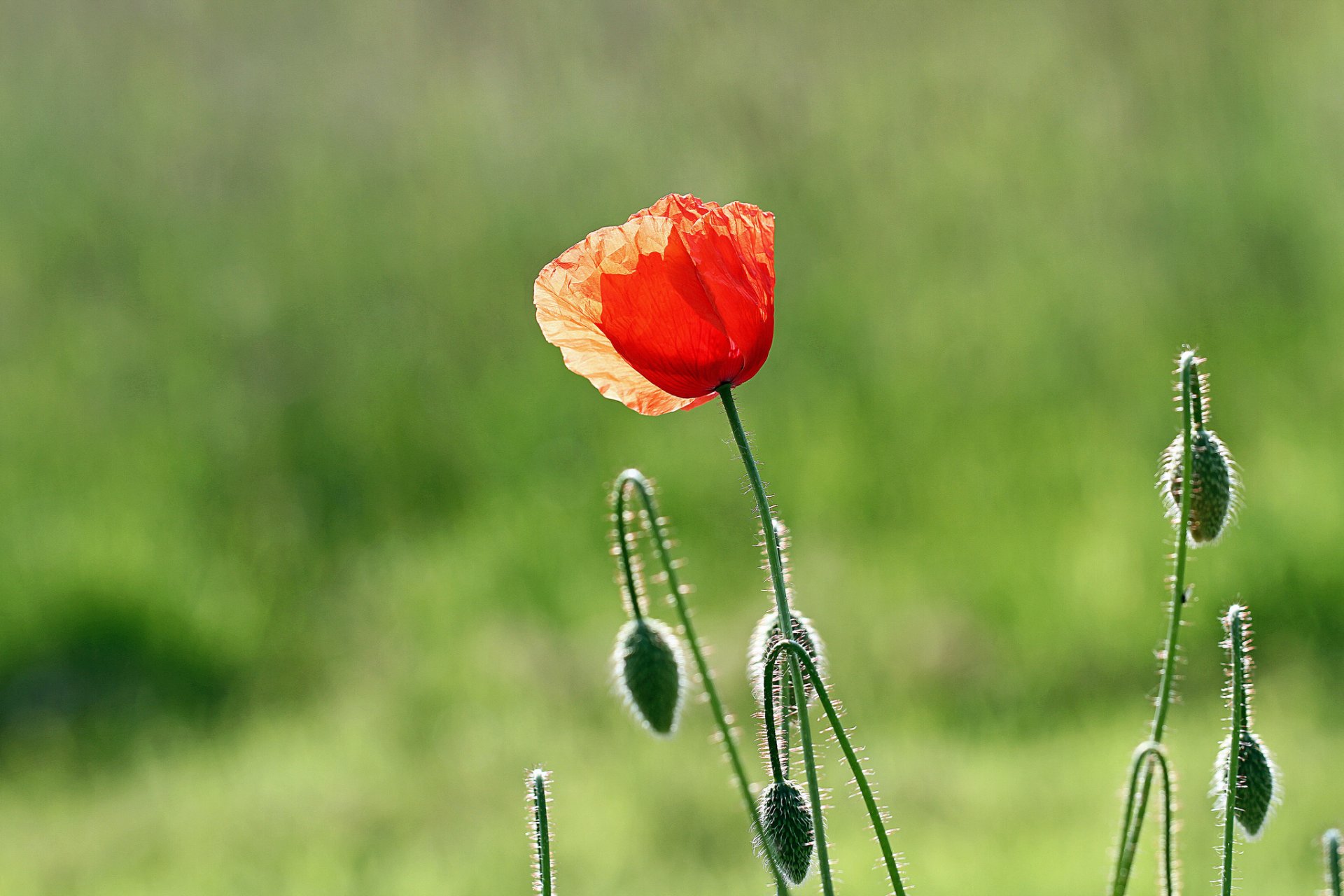 Eine Lichtung mit roten Mohnblumen und grünem Gras