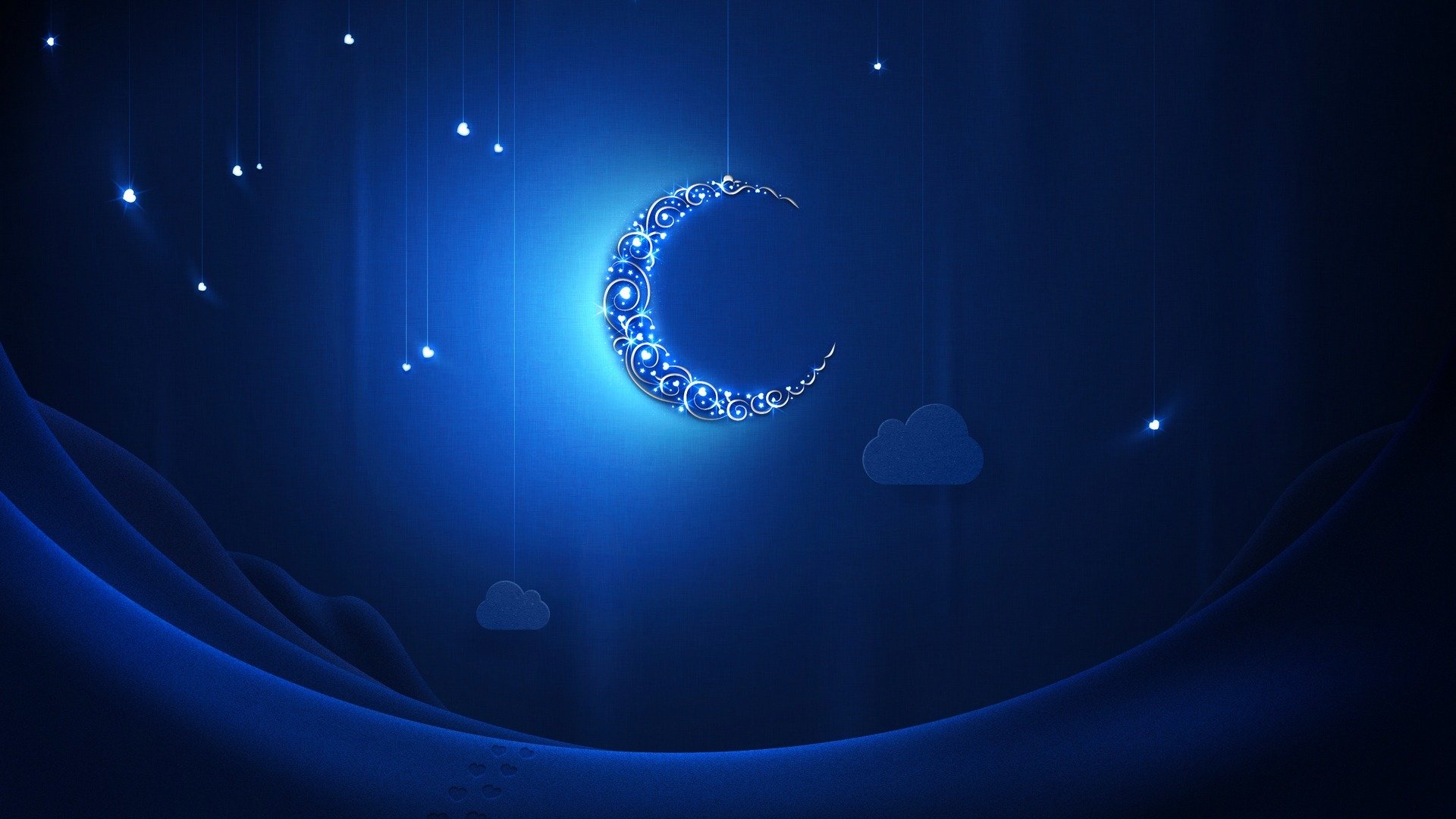 Durchbrochener heiliger Monat und Ankünfte auf blauem Hintergrund