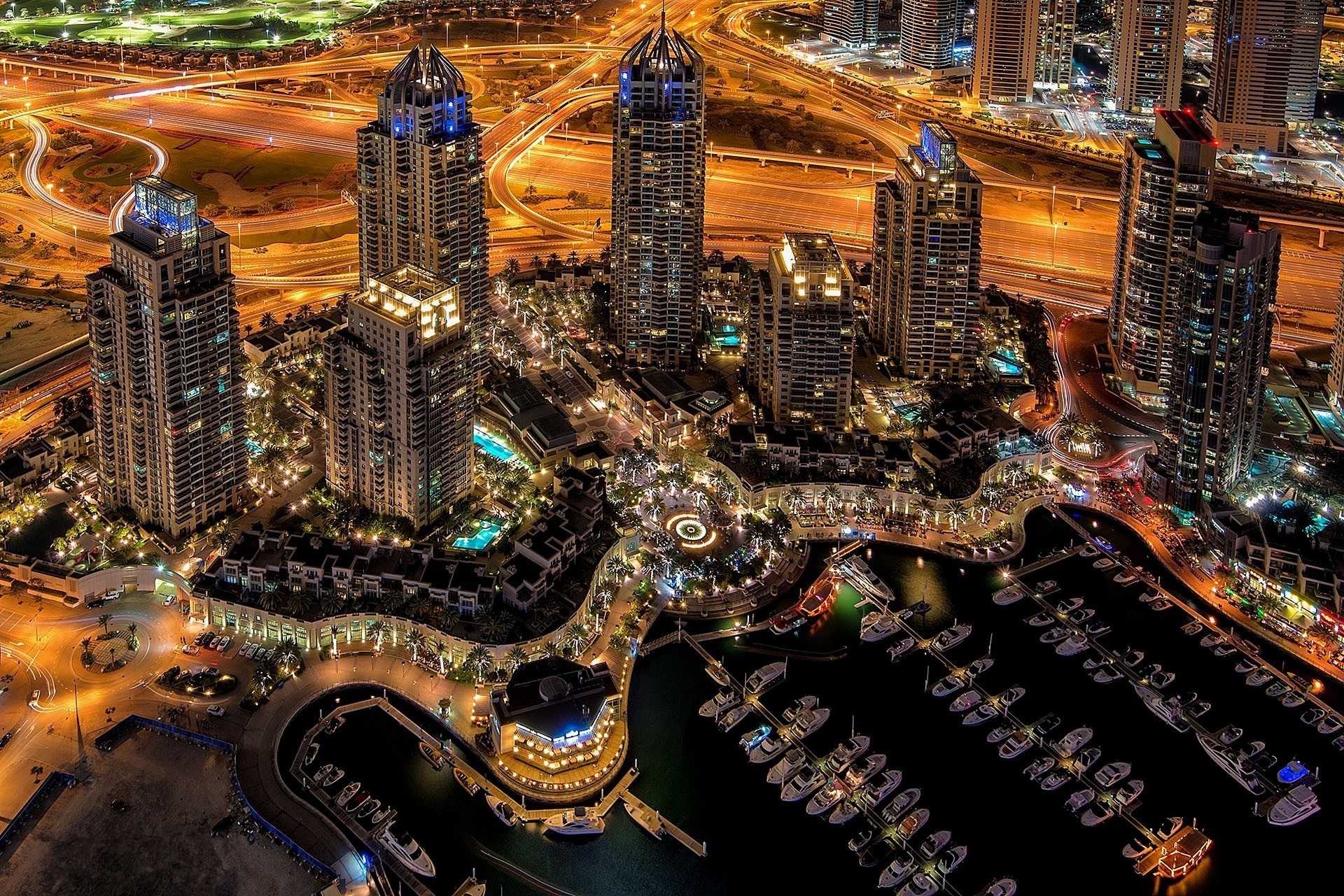Yacht im Meer vor dem Hintergrund der Brücke und der Lichter in der Nacht