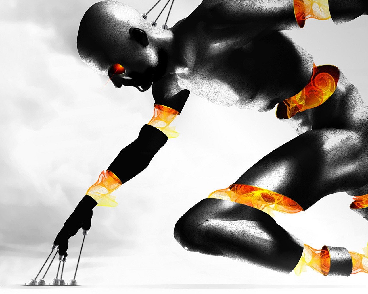 Ein Kämpfer mit einem Maschinengewehr verbrennt eine Fahne