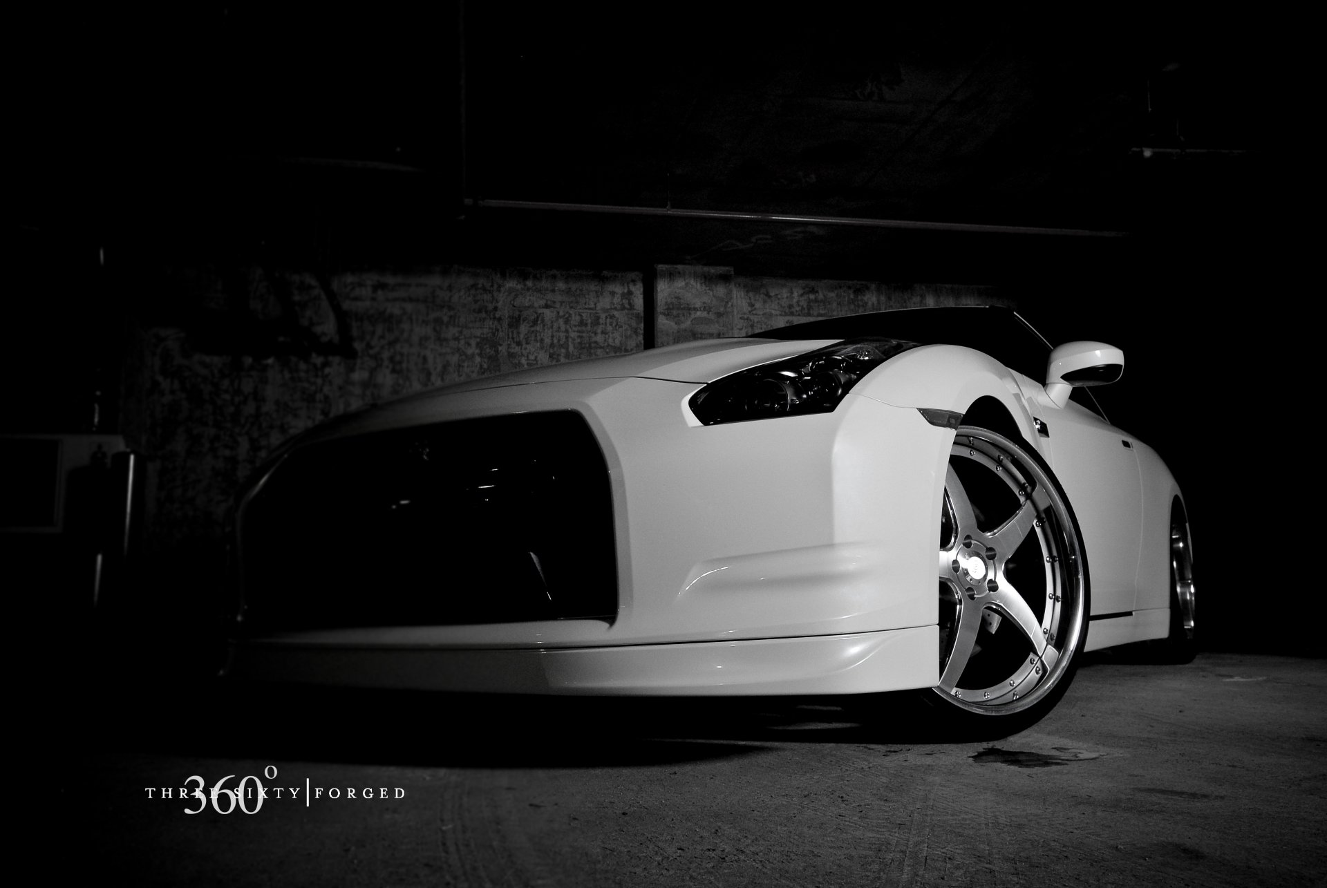Weißer Nissan fährt durch die mls durch die Nachtstadt