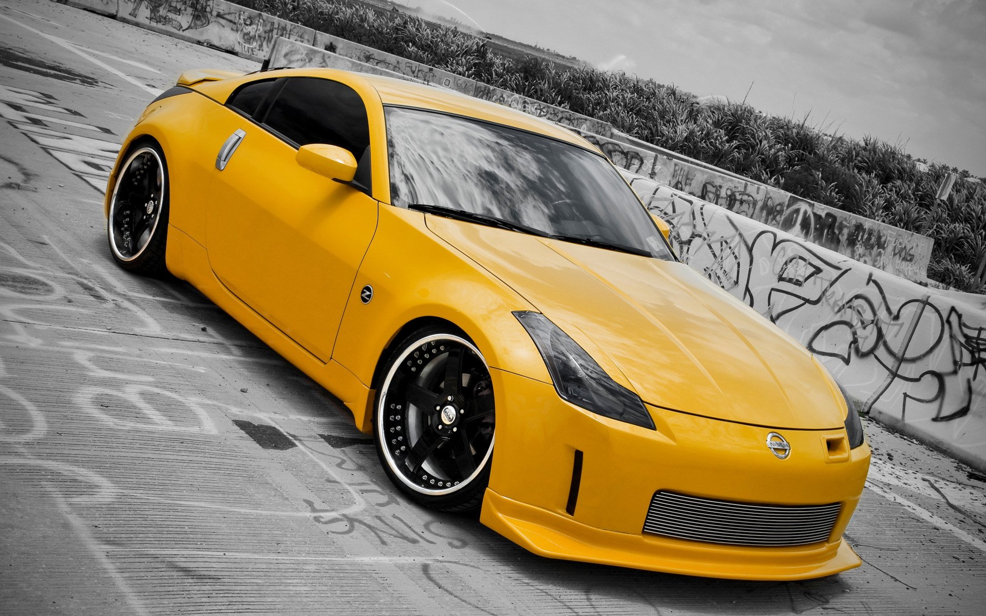 Ein brauner Nissan-Wagen auf einer schwarzen Straße