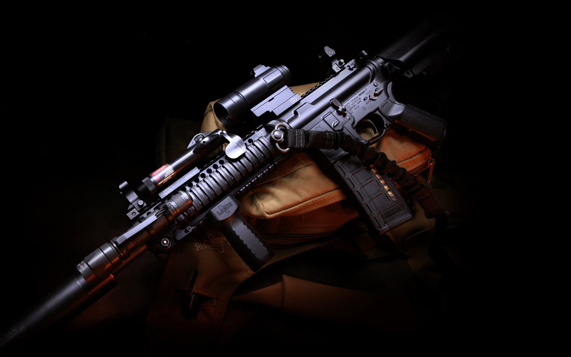 Sturmgewehr mit schalldämpfer im halbdunkel