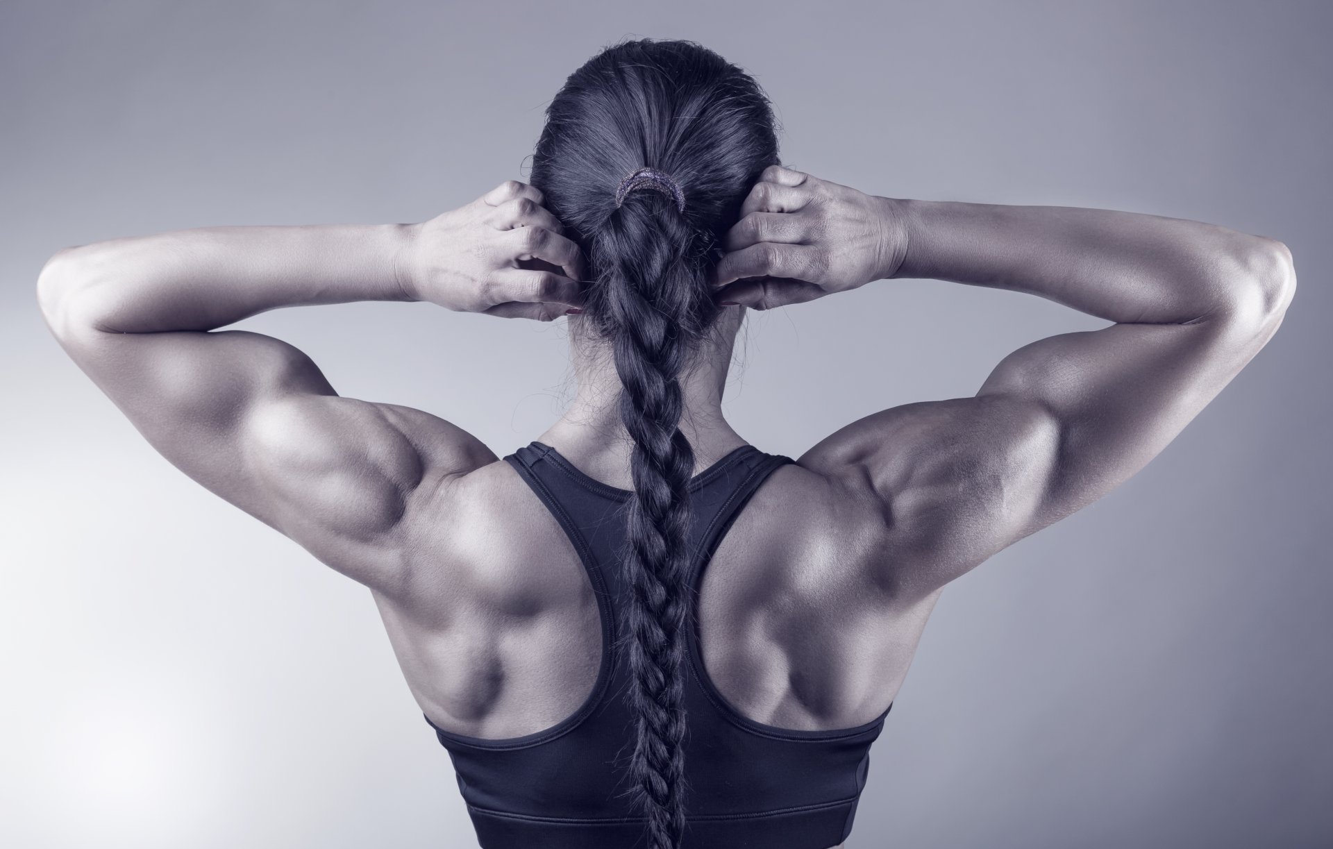 Bodybuilding Olga Belyakova mit aufgepumpten Muskeln