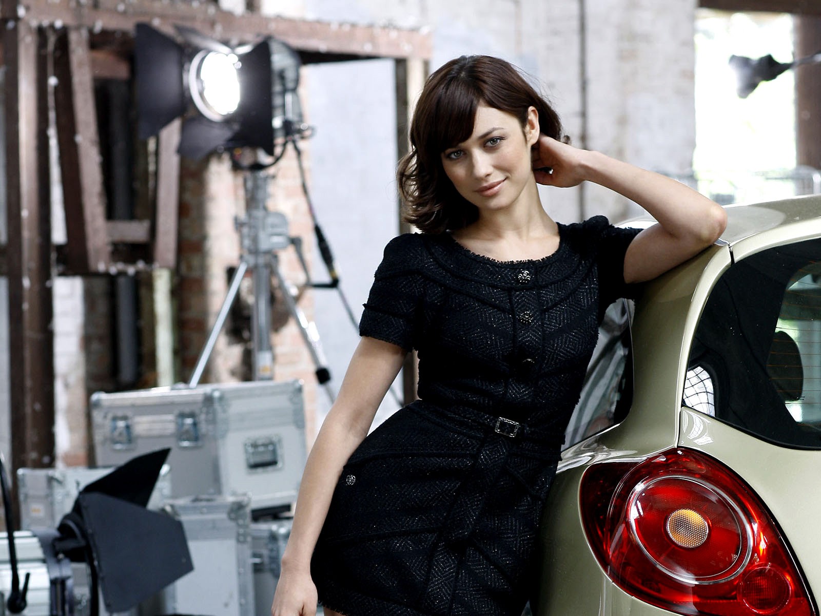 Schauspielerin Olga Kurylenko in einem schönen Mantel