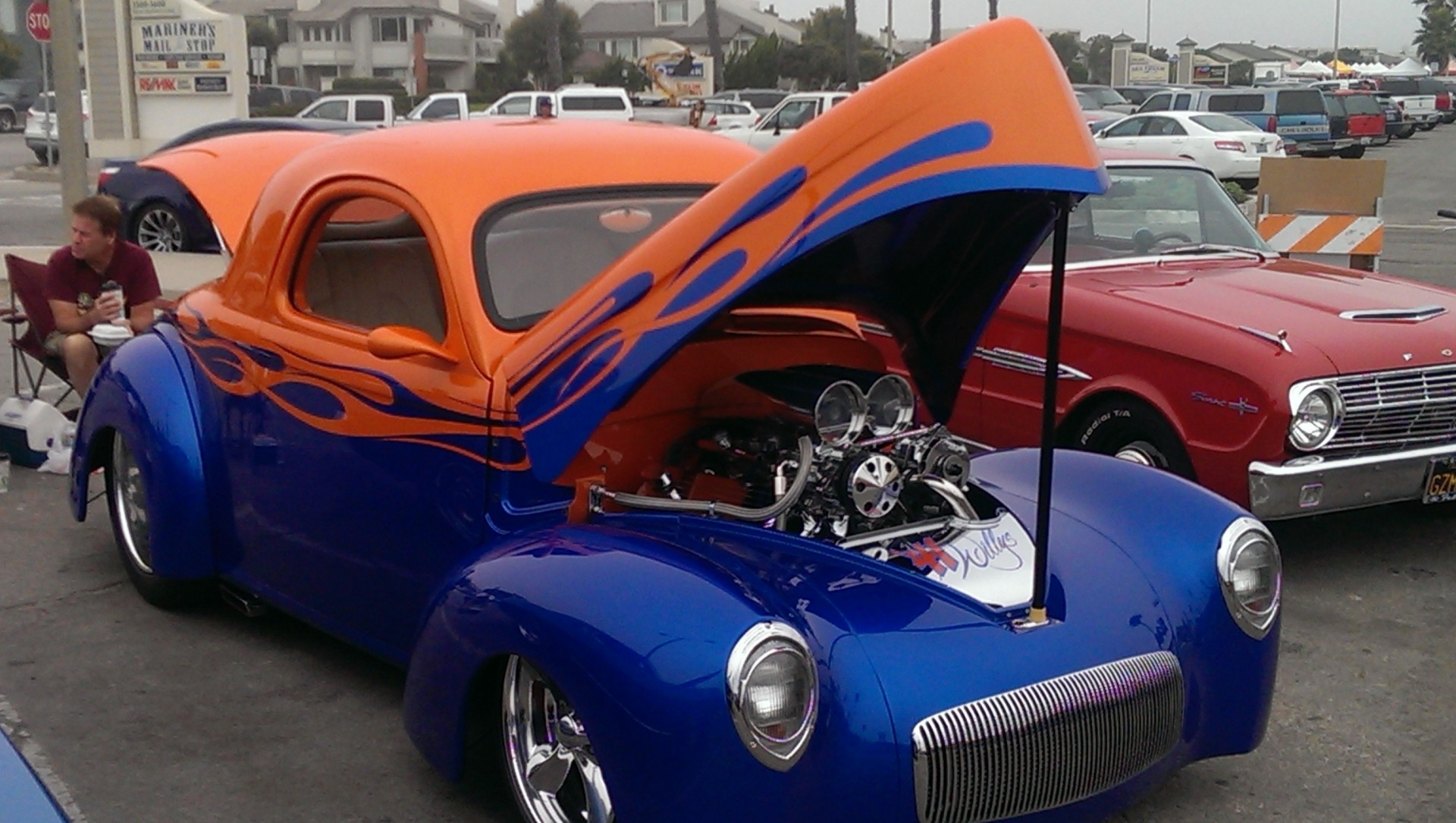 Auto Raritäten blau unten orange oben mit Flamme