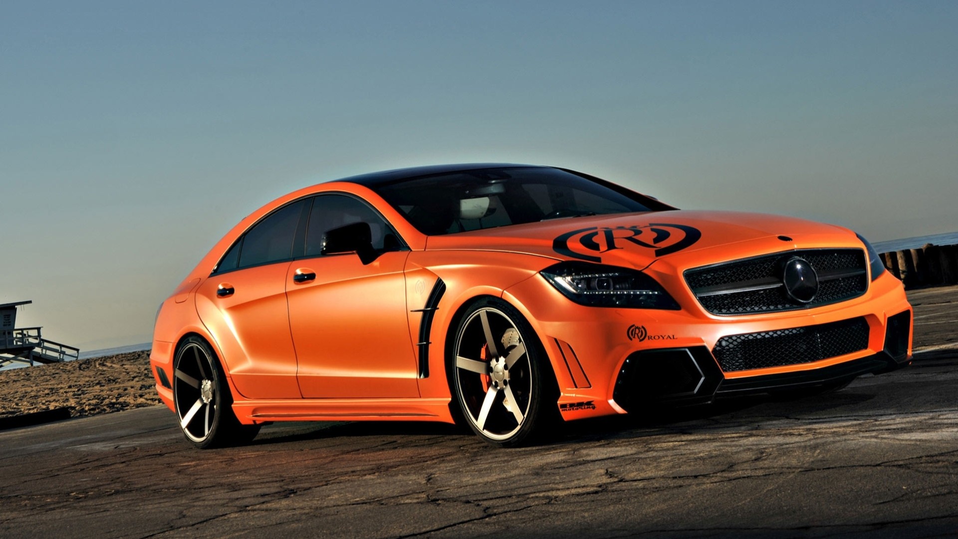 Orange Mercedes Limousine Ansicht von unten