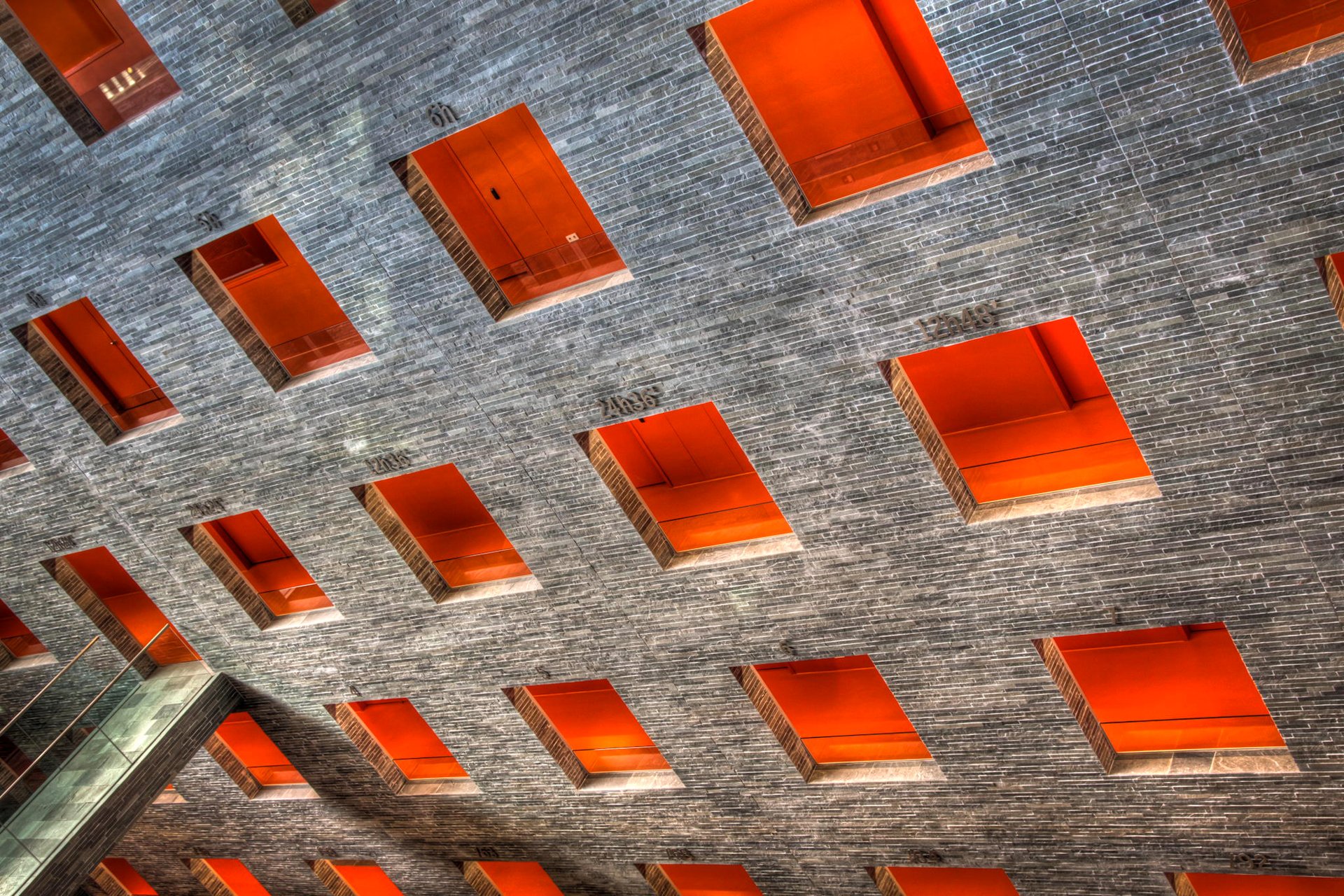 Sehr schöne und identische Fenster. Das orangefarbene Licht leuchtet