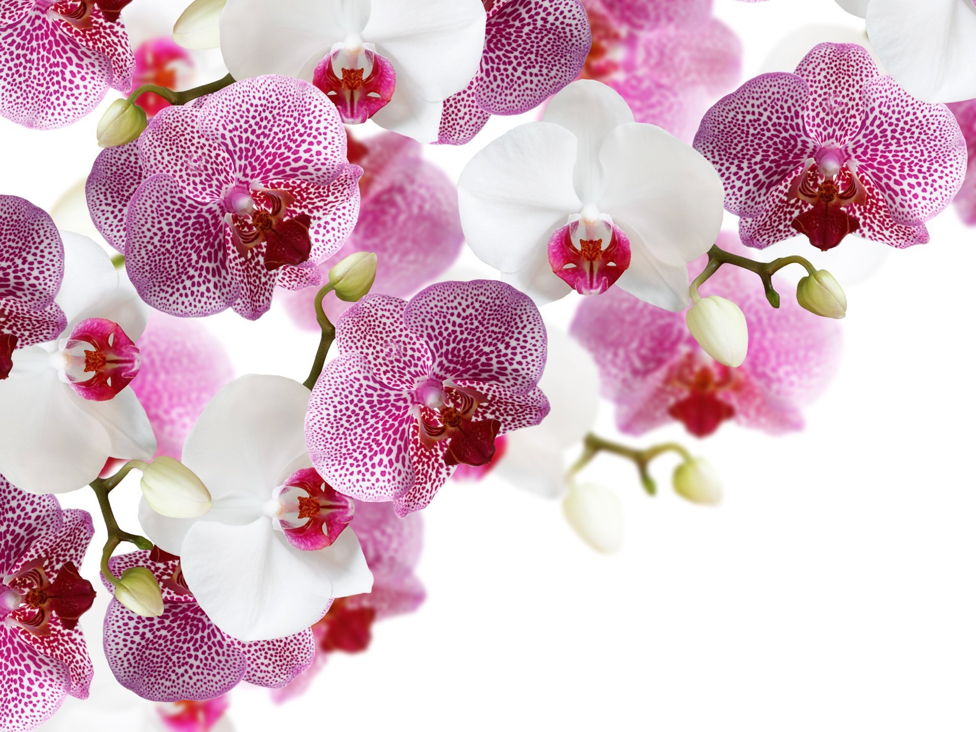 Schneeweiße Zärtlichkeit von Orchideen auf einem verschwommenen Hintergrund
