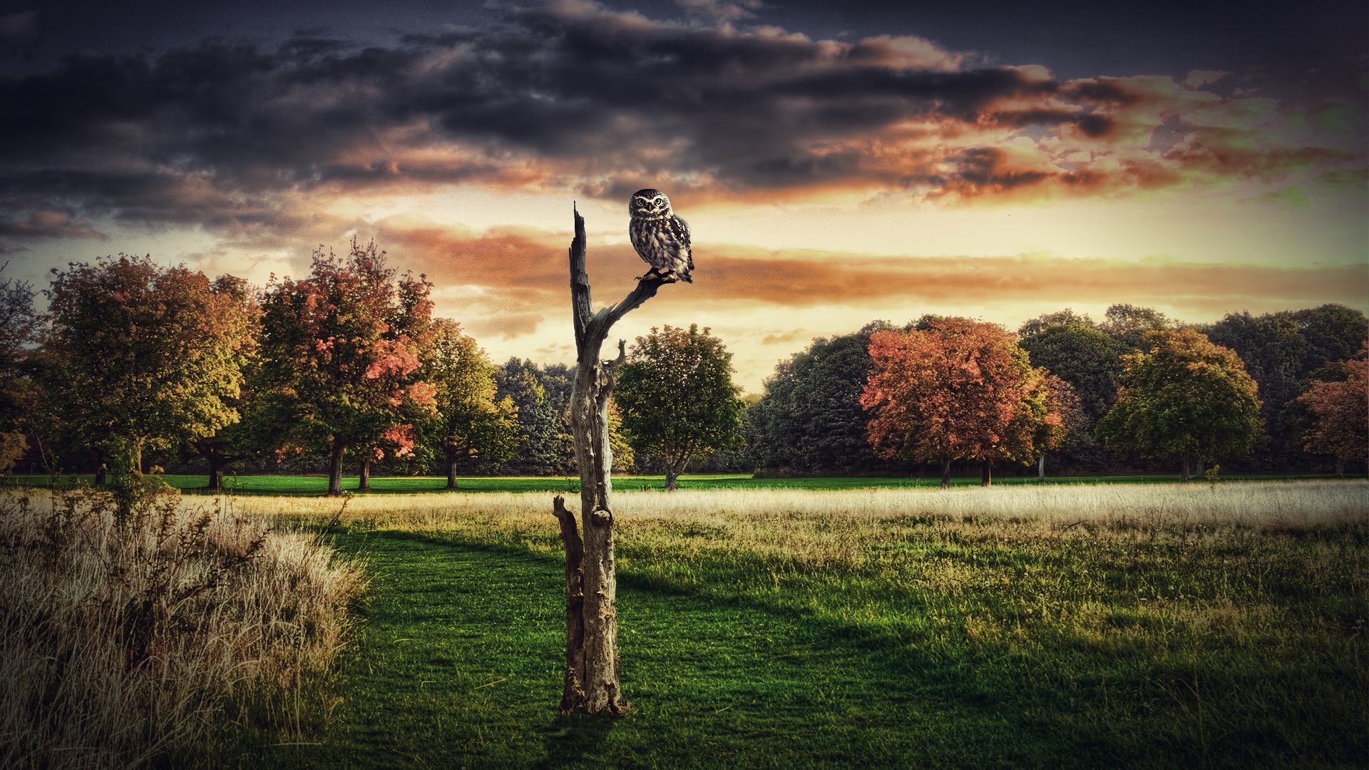 Eule, die auf einem trockenen Baum sitzt