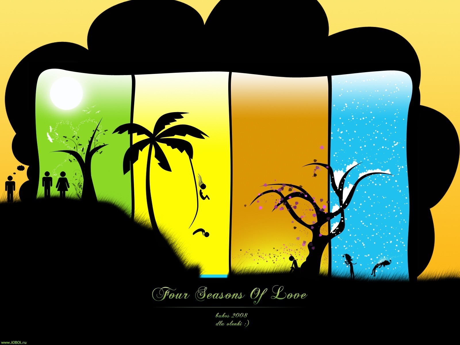 Bunte Palmen auf schwarzem Hintergrund