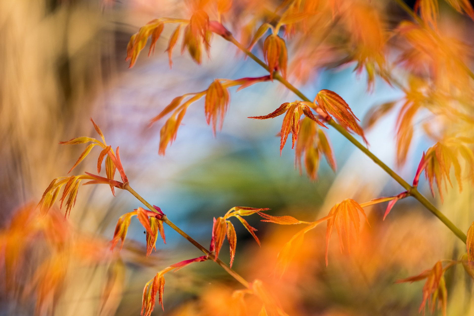 Gelbe Herbstblätter auf einem Ast