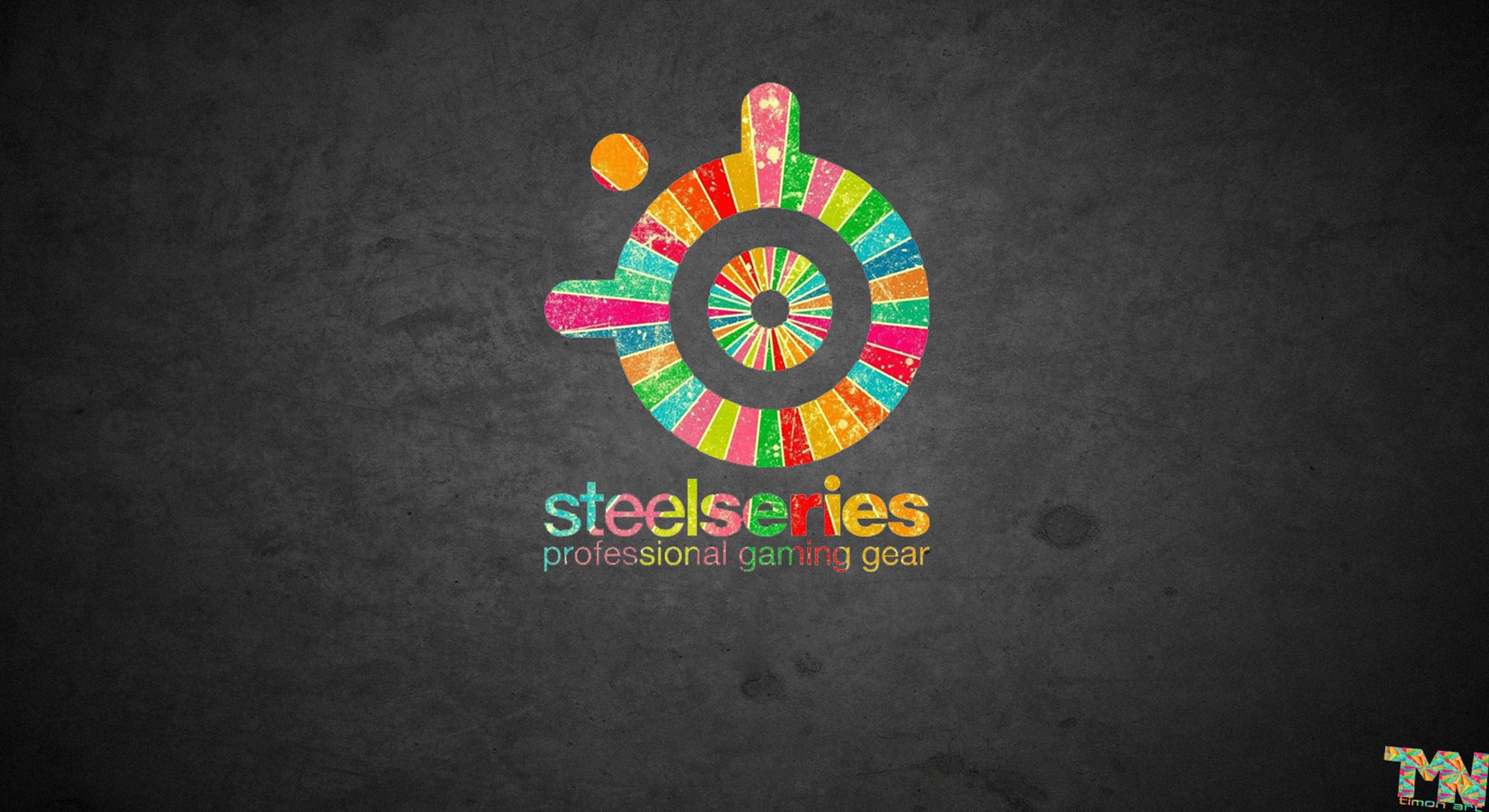 Farbiges Emblem mit Inschriften auf schwarzem Hintergrund