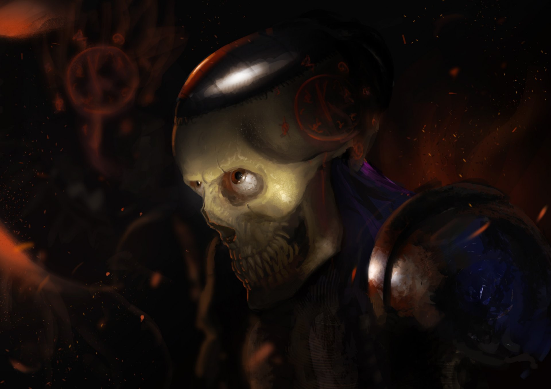 Atmosphärische Kunst mit einem Skelett mit scharfen Reißzähnen