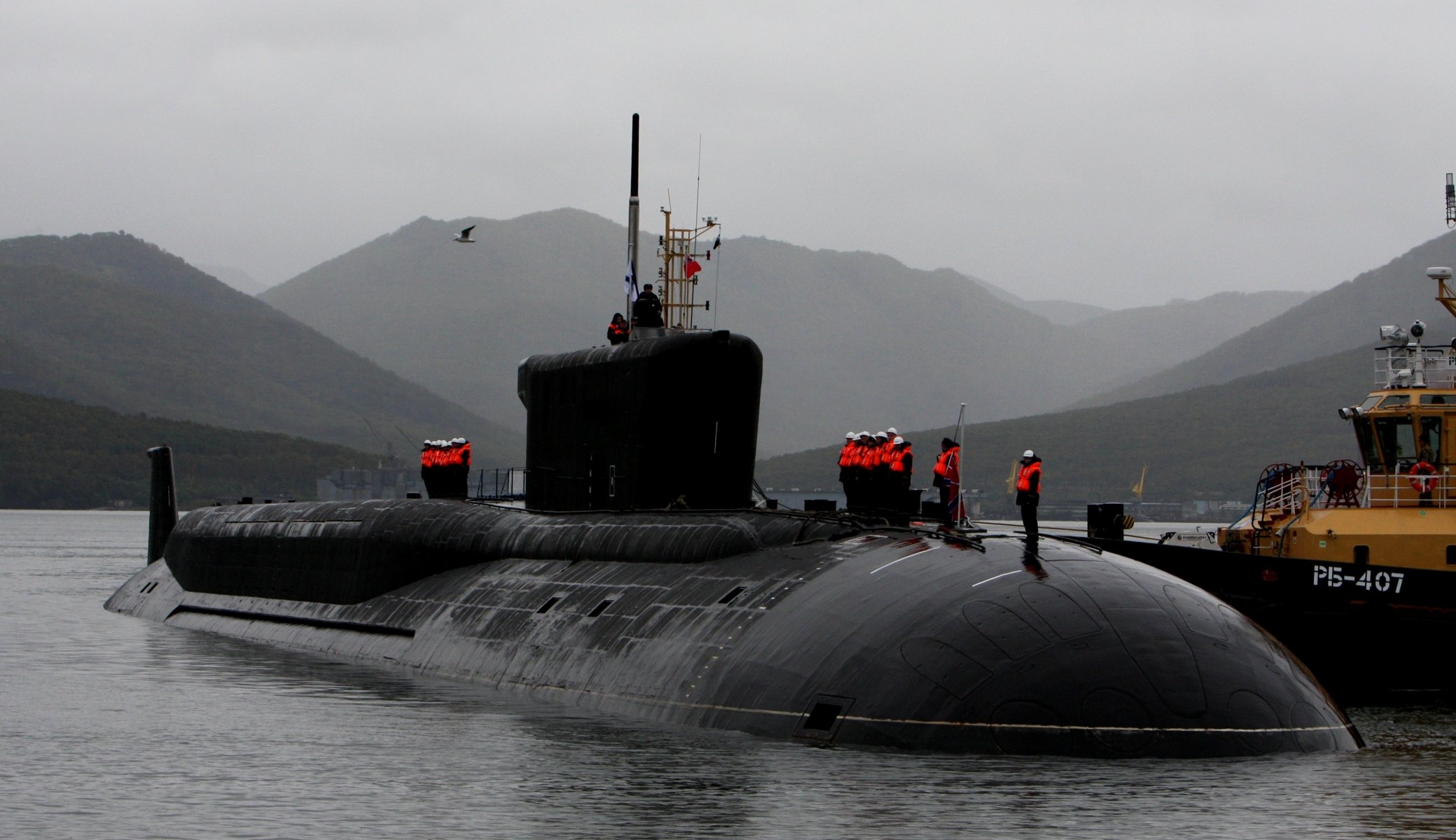 U-Boot des Projektes 955 «Northwind" mit Besatzung an der Oberfläche