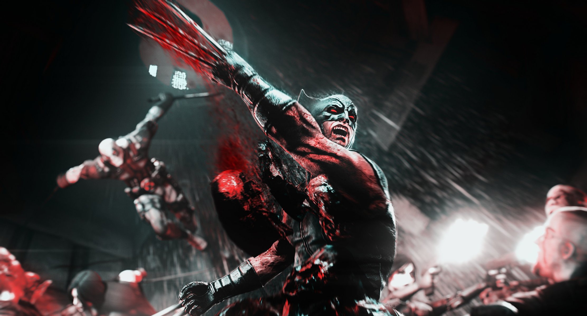 Krieger in Rüstung und Schwert auf Winterhintergrund