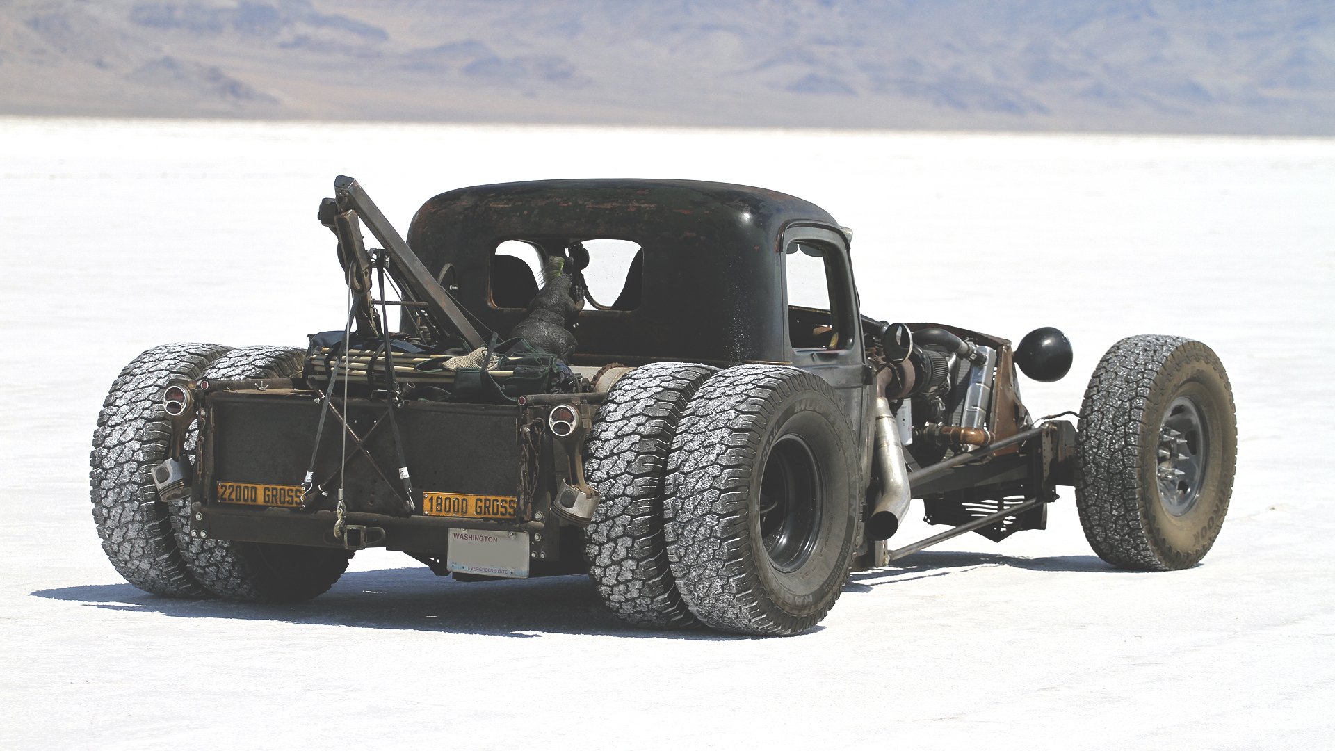 Ein ungewöhnliches Auto steht in der Nähe des Waldes