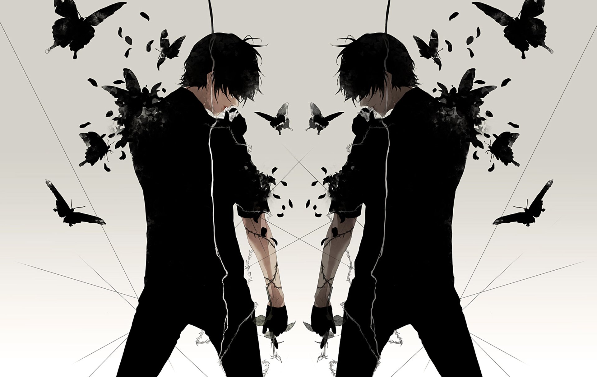 Schmetterlinge, die sich in den Tiefen des Spiegels des Denkens ausbreiten