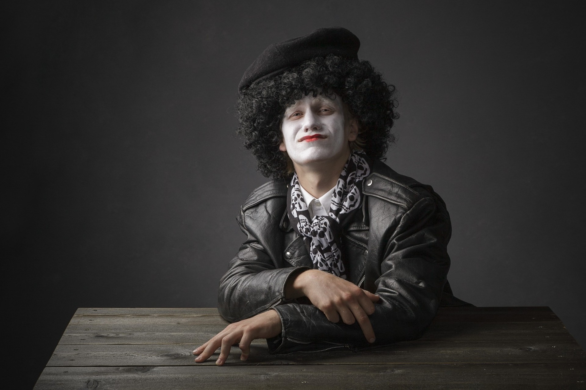 Stilisierung für einen Clown in Perücke, Mütze, Maske