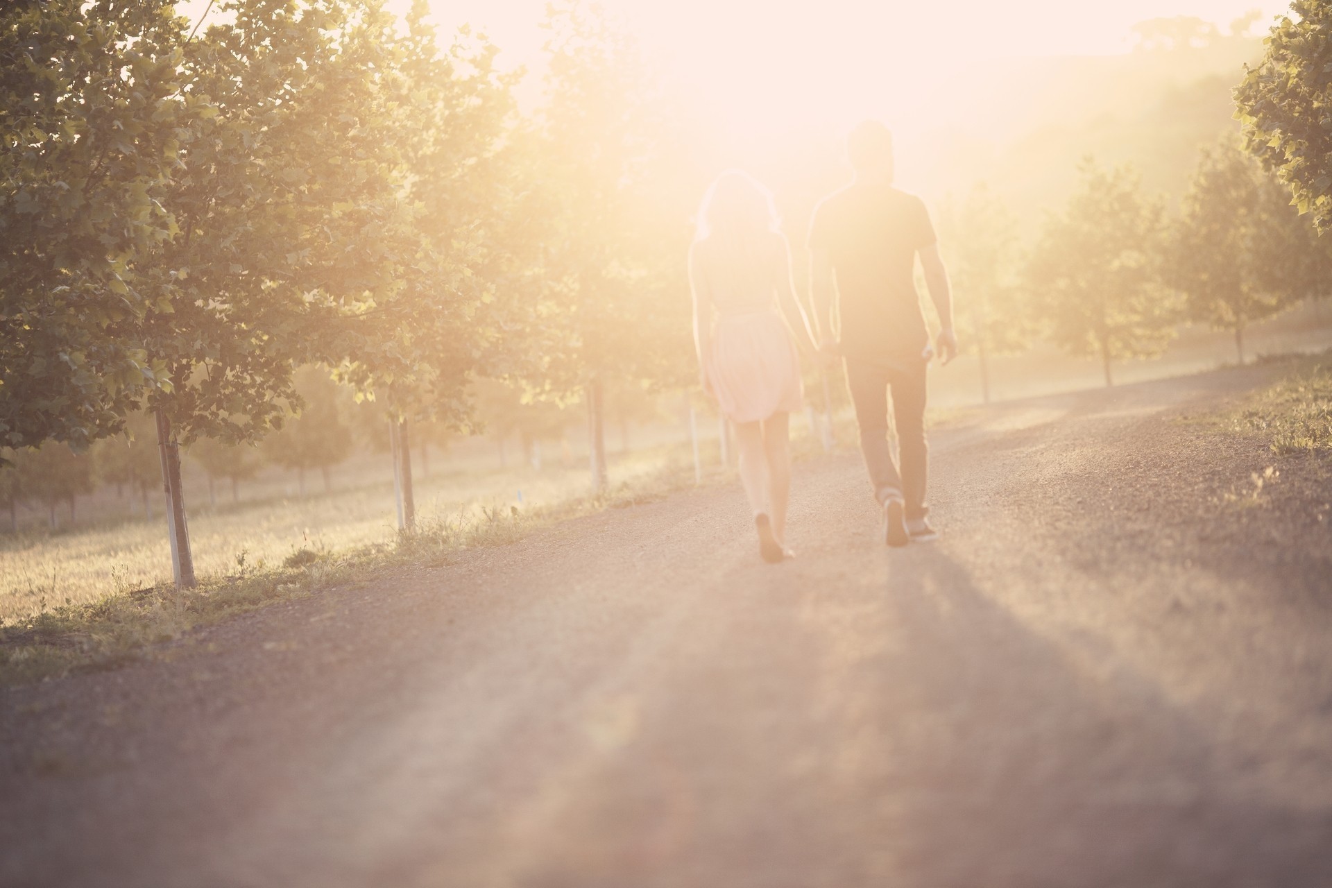 Das Paar geht Hand in Hand