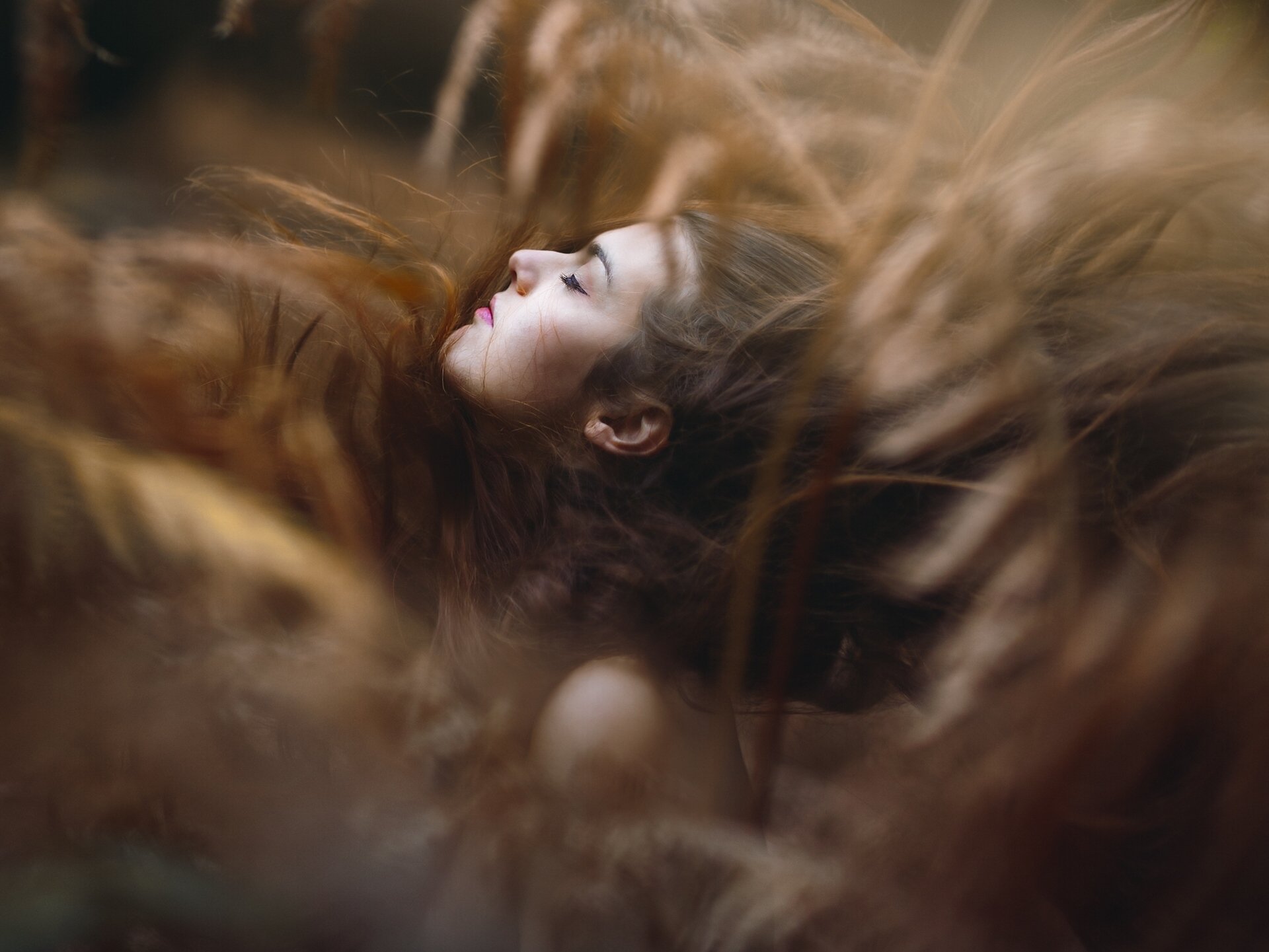 Nachdenkliches Mädchen mit einem Kranz auf dem Kopf