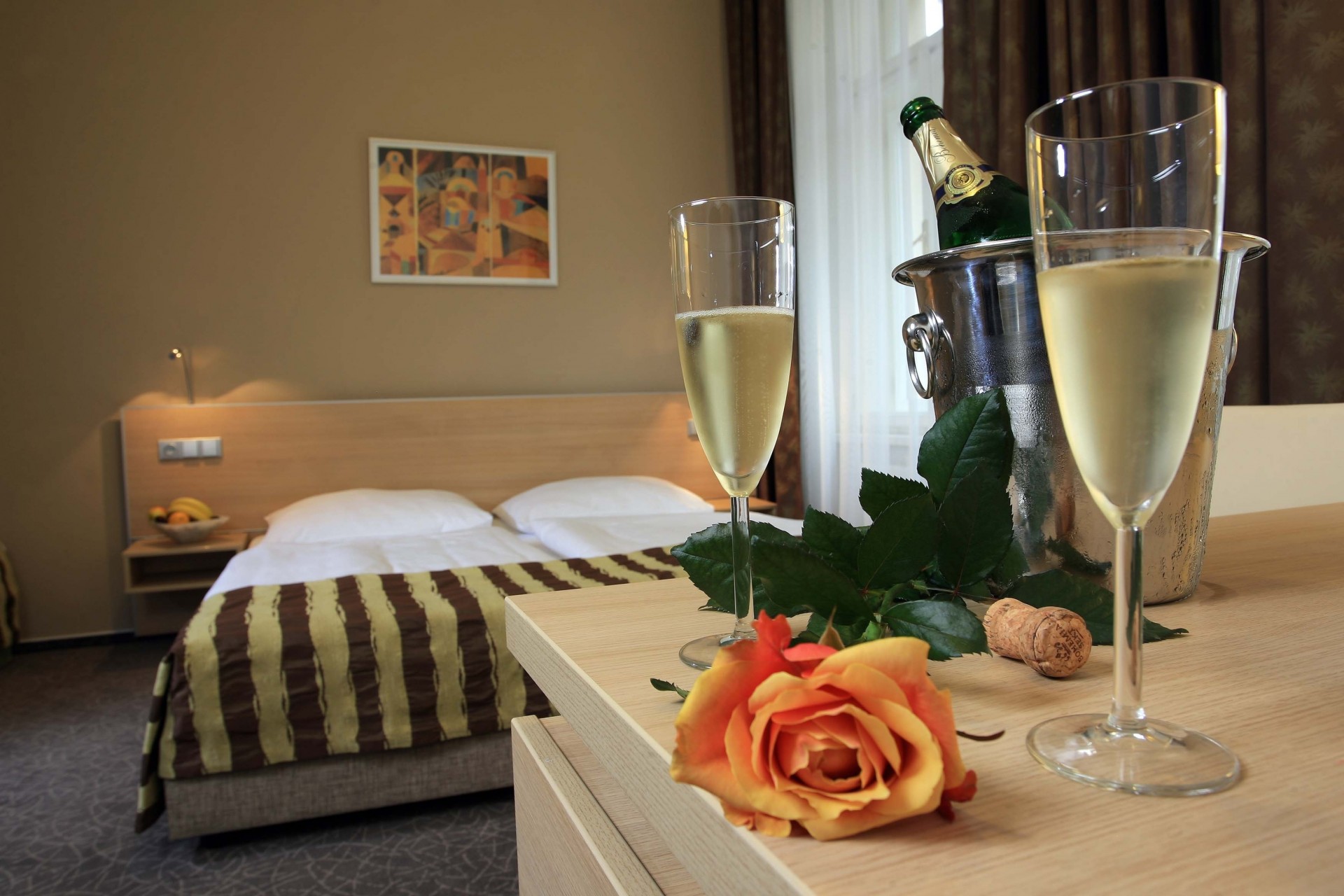 Zwei Gläser Champagner mit Bändern. Kerze und romantische Stimmung