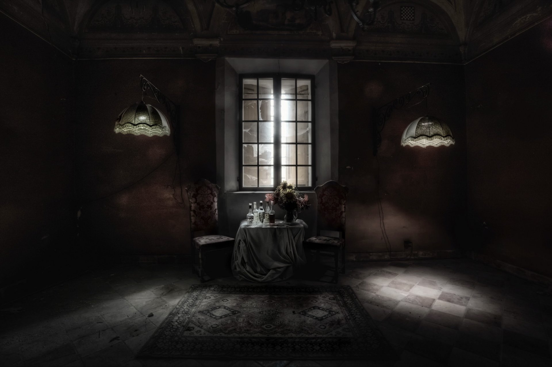 Ein romantisches Nachtzimmer, das auf ein Date wartet