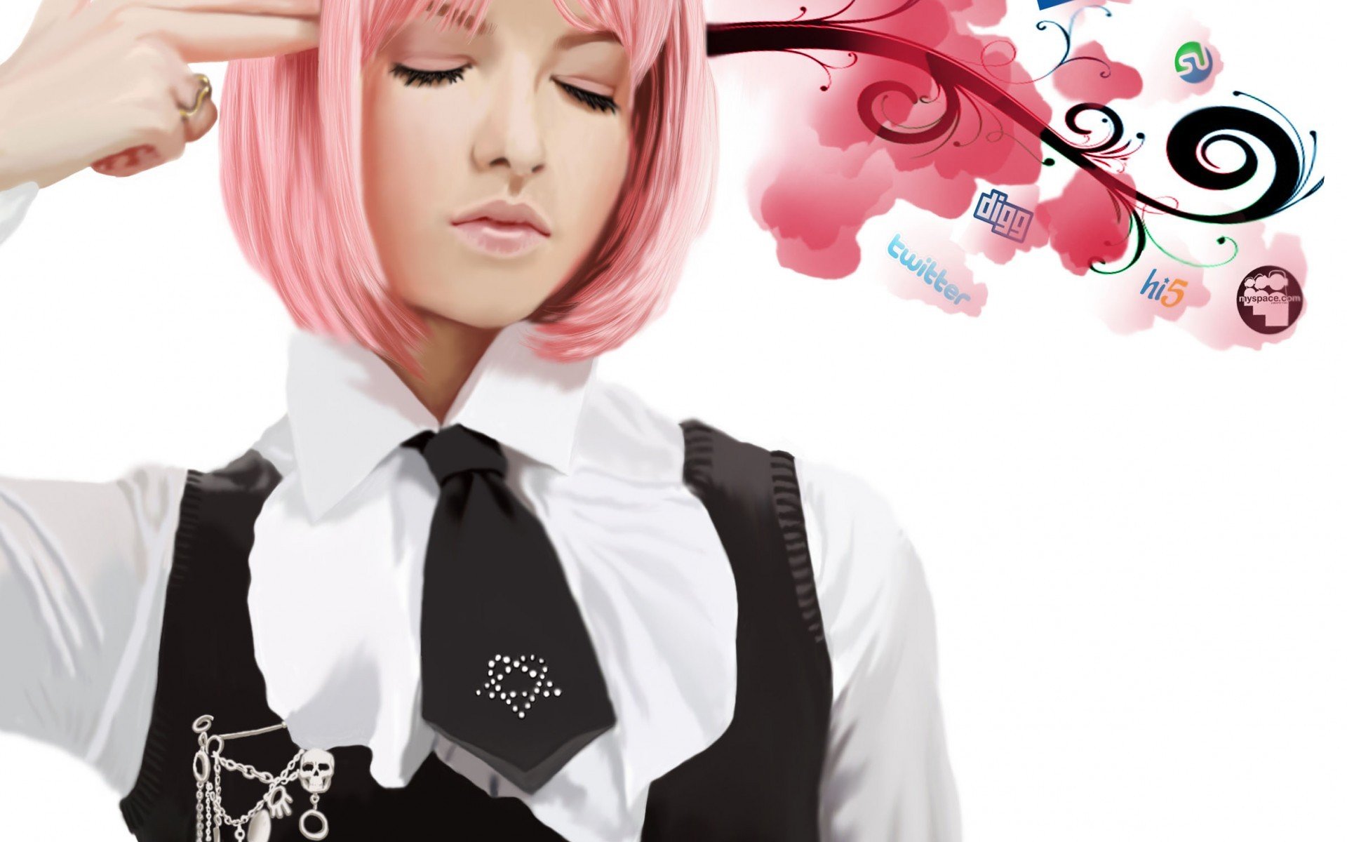 Abbildung eines Mädchens mit kurzen rosa Haaren