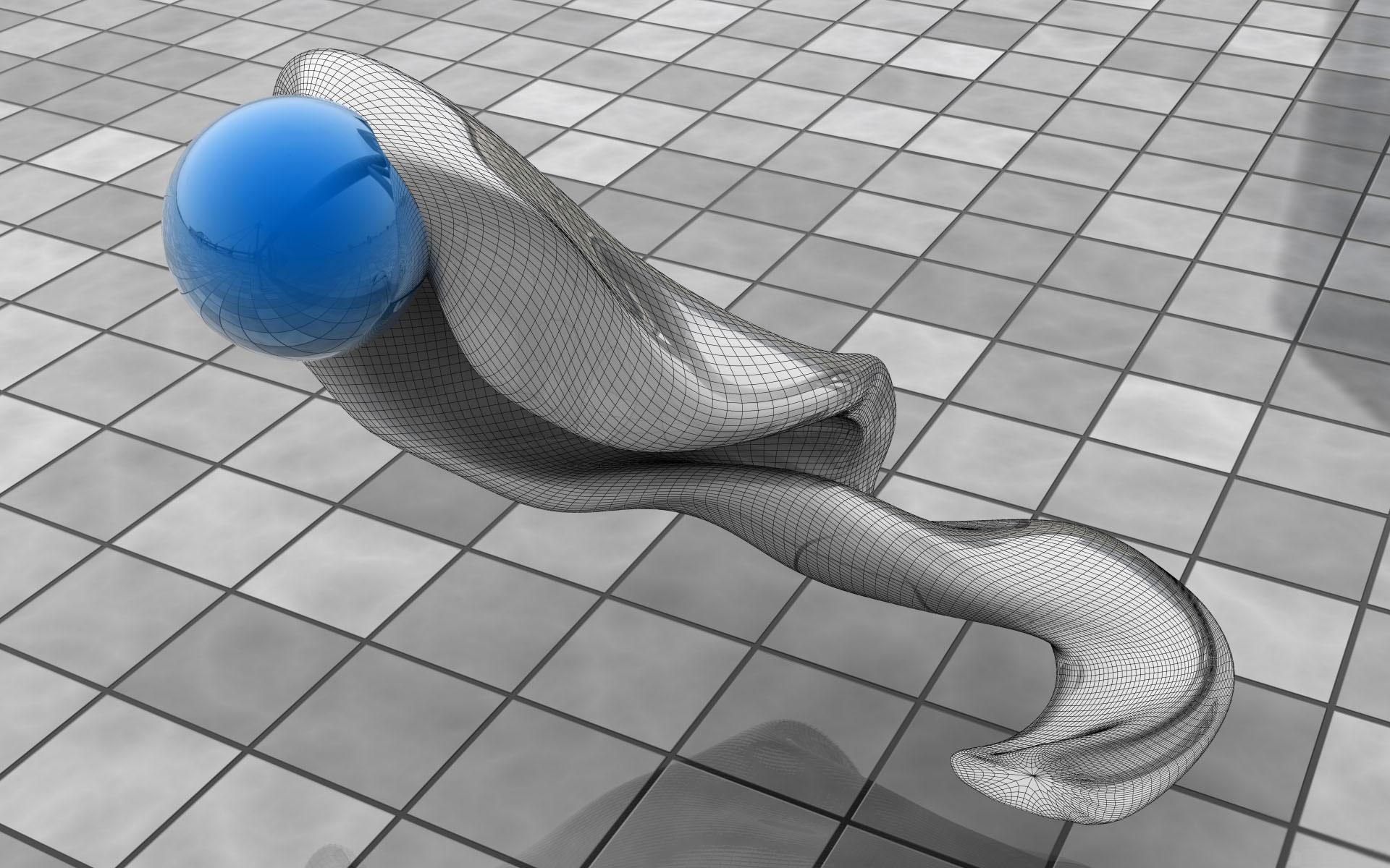 Blaue Kugel auf grauem Netz