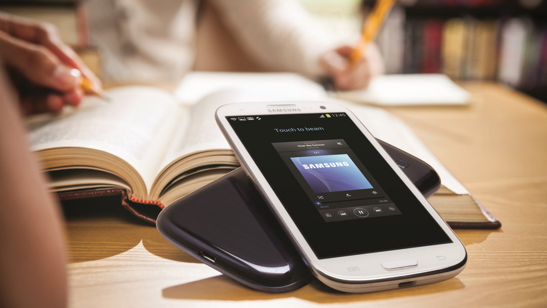 Android Samsung Galaxy s3 neben Büchern auf dem Schreibtisch