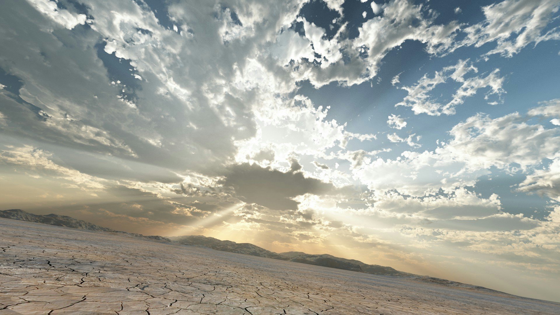 Die Sonnenstrahlen brechen durch den bewölkten Himmel