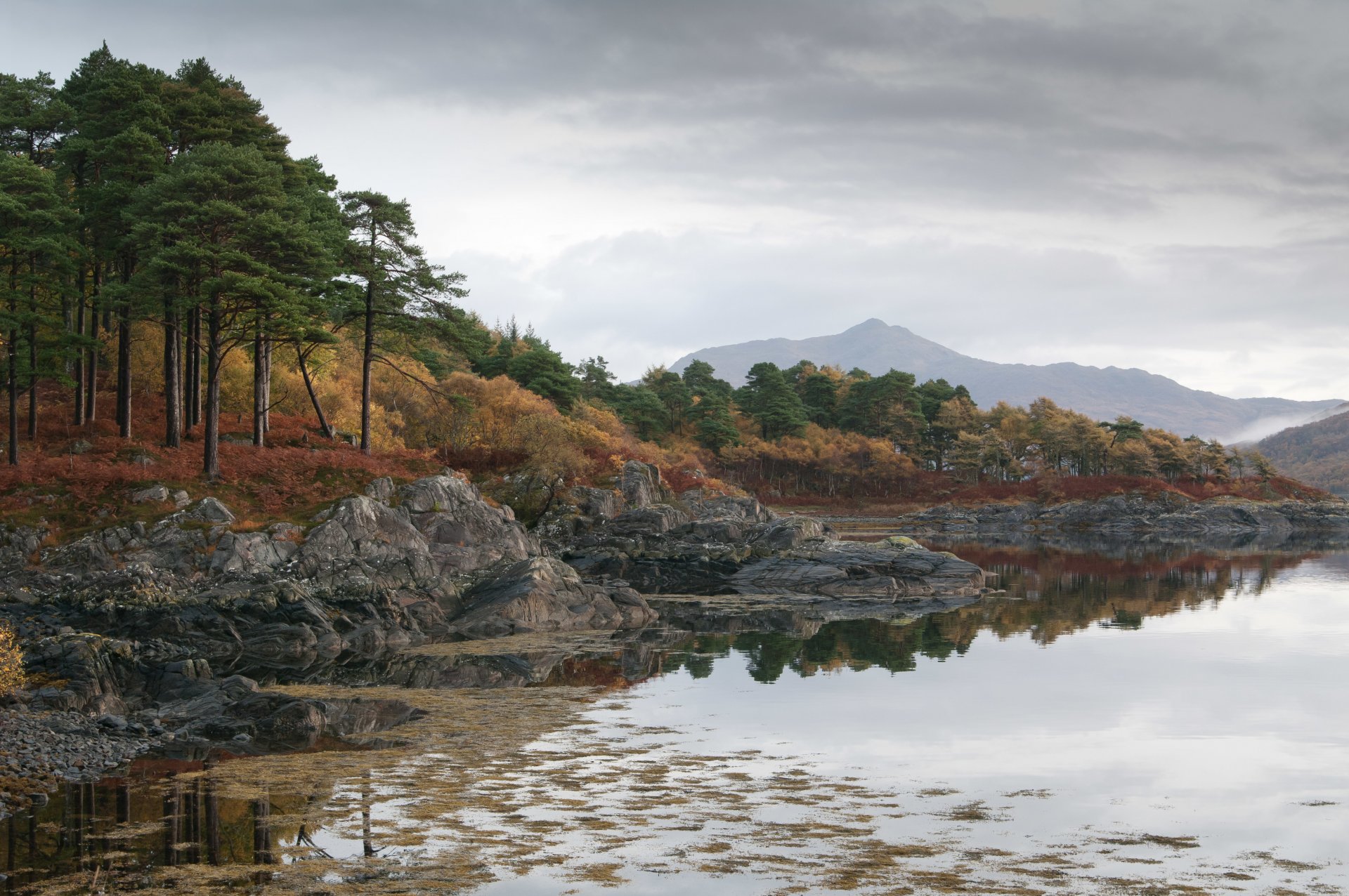 Felsige Küstenlandschaft mit Blick auf die Berge