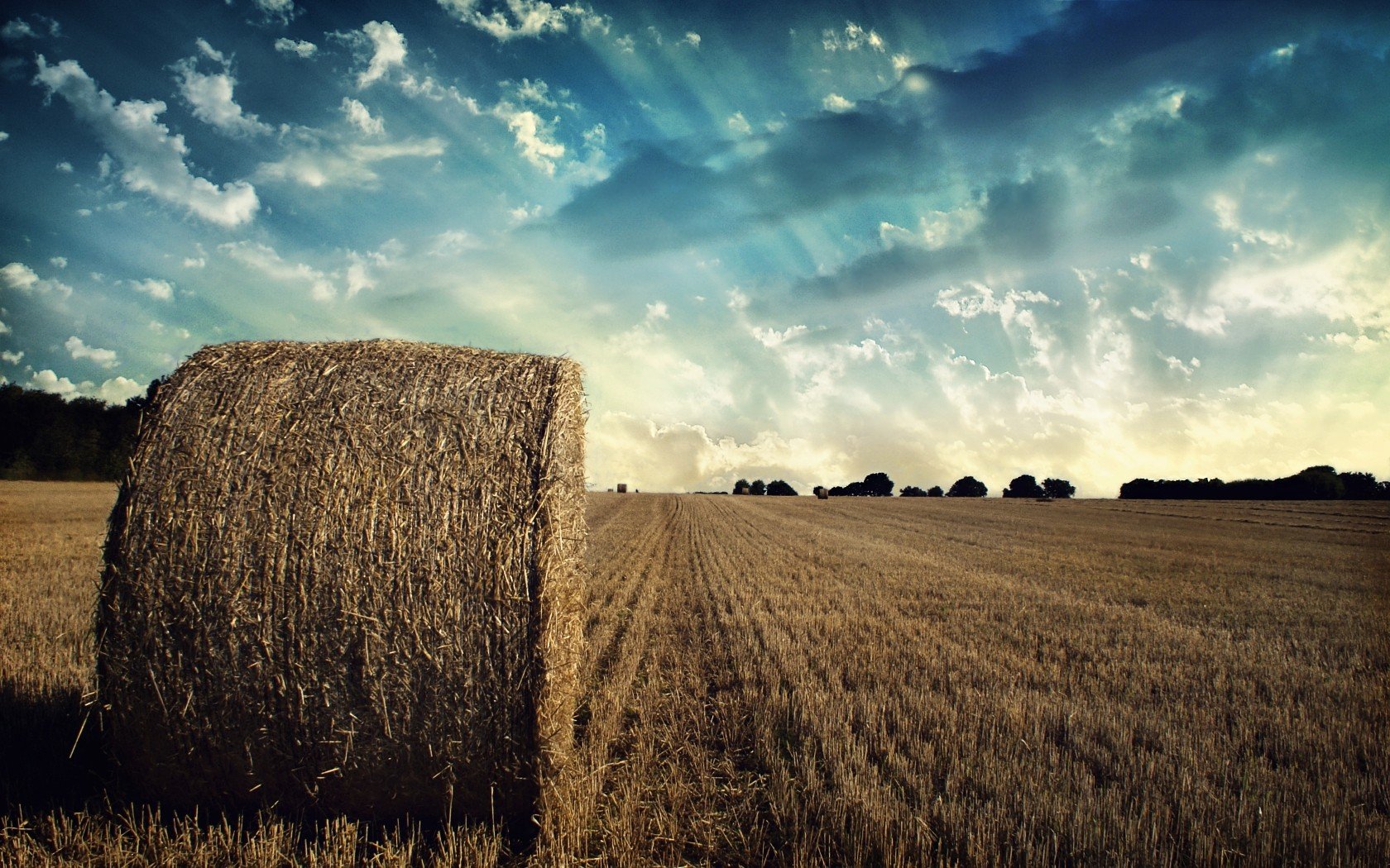 Gezeichnete Wolken in Form von Pferden über dem Feld