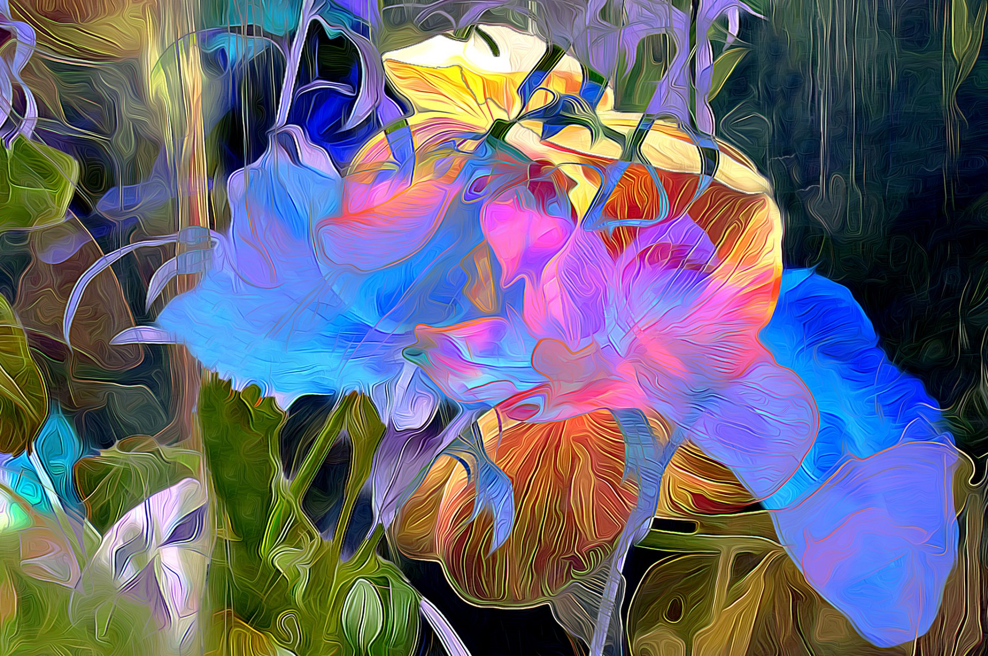 Abstrakte Zeichnung von Linien, Strahlen, Blumen