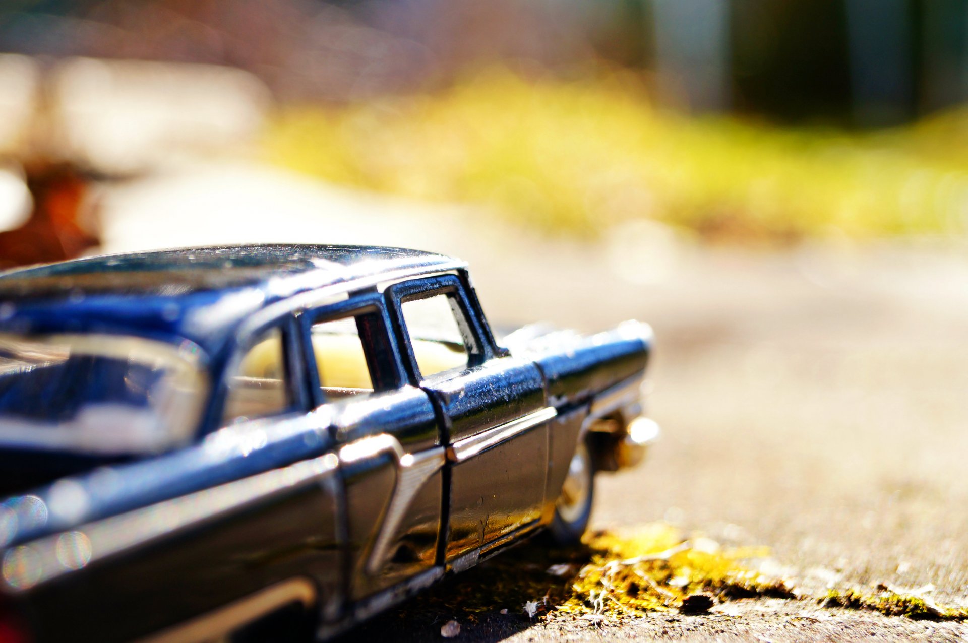 Schwarzes Auto auf Hintergrund von Schienentransporten