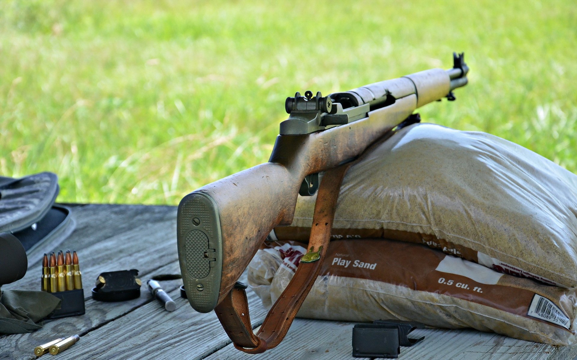 Foto eines Revolvers mit Patronen auf weißem Hintergrund