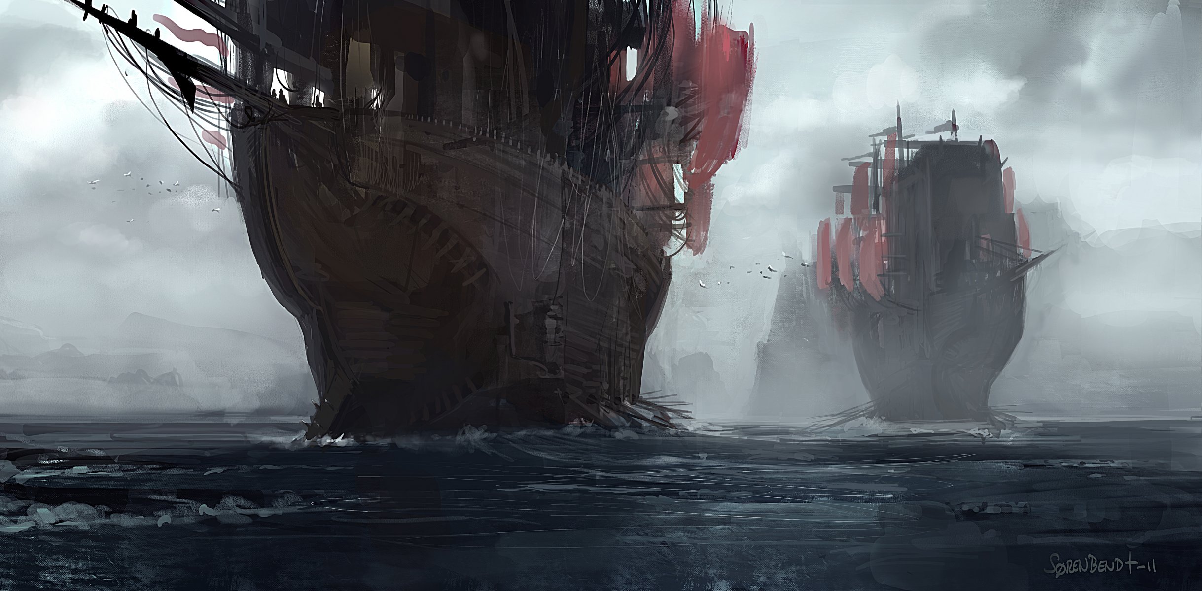 Ein Schiff, das die Ozeane unter dem blassen Sonnenschein durchforstet